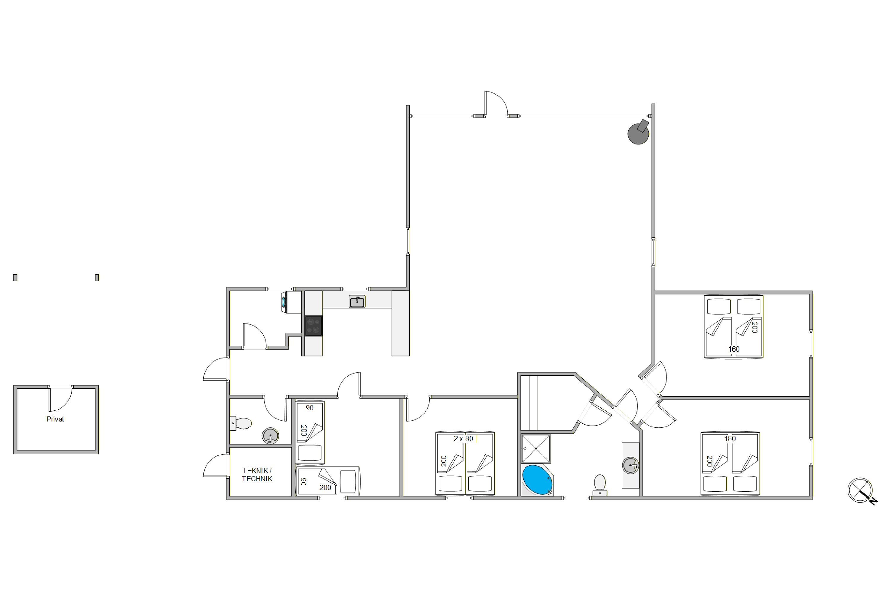 Sommerhuset er ideelt for dem, der ønsker at dele ferien med familie og venner. Med plads til at huse 8 personer er her 4 gode soverum, som er designet til at give hver enkelt gæst en fornemmelse af privatliv og ro. Køkkenet, der er udstyret med en moderne opvaskemaskine, sikrer, at I kan nyde god mad uden bekymringer om opvasken. Badeværelset er udstyret med gulvvarme, hvilket sikrer en behagelig varme i fødderne, selv på kølige dage. Derudover findes der et praktisk gæstetoilet, så der ikke opstår kø. Efter en lang dag med eventyr i den lokale natur kan I nyde en afslappende stund i spaen. Sommerhuset tilbyder også en sauna, hvor I kan få fornyet energi efter dagens oplevelser.