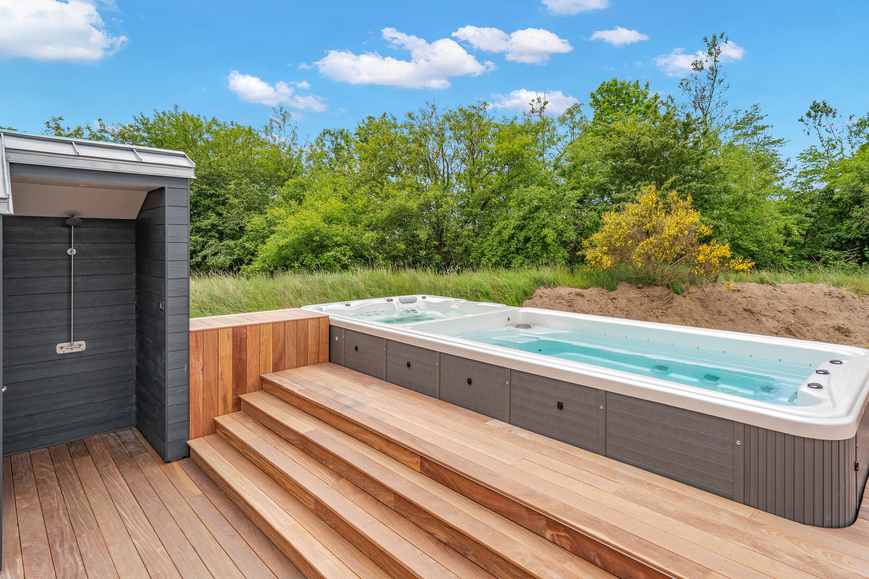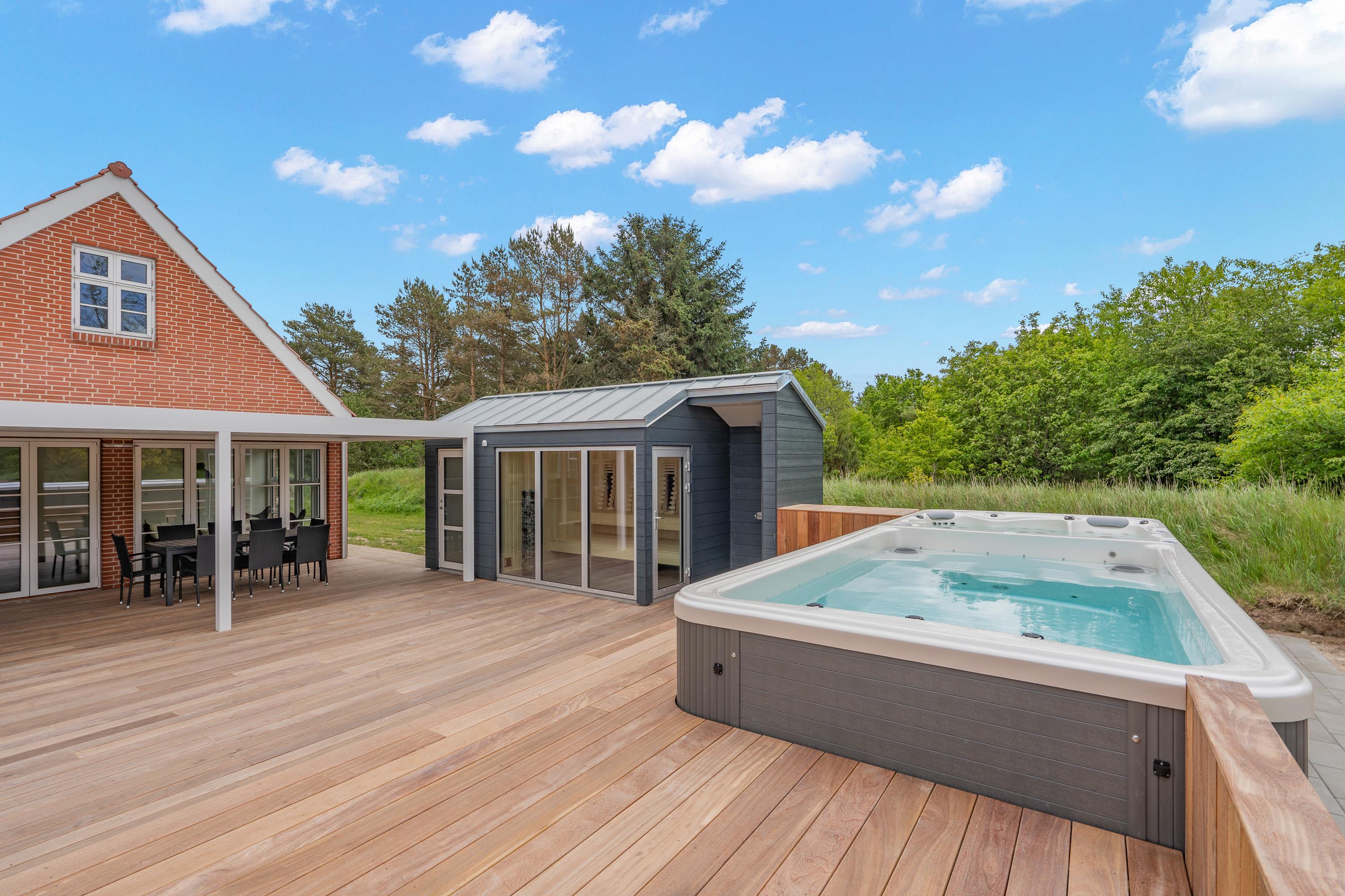 Feriehusets svømmespa har plads til 5 personer, med priklende bobler, mens der i den anden ende af svømmespaén, er et område med mulighed for leg for de mindste. Her finder I også en skøn udebruser, som kan bruges fra april til november.