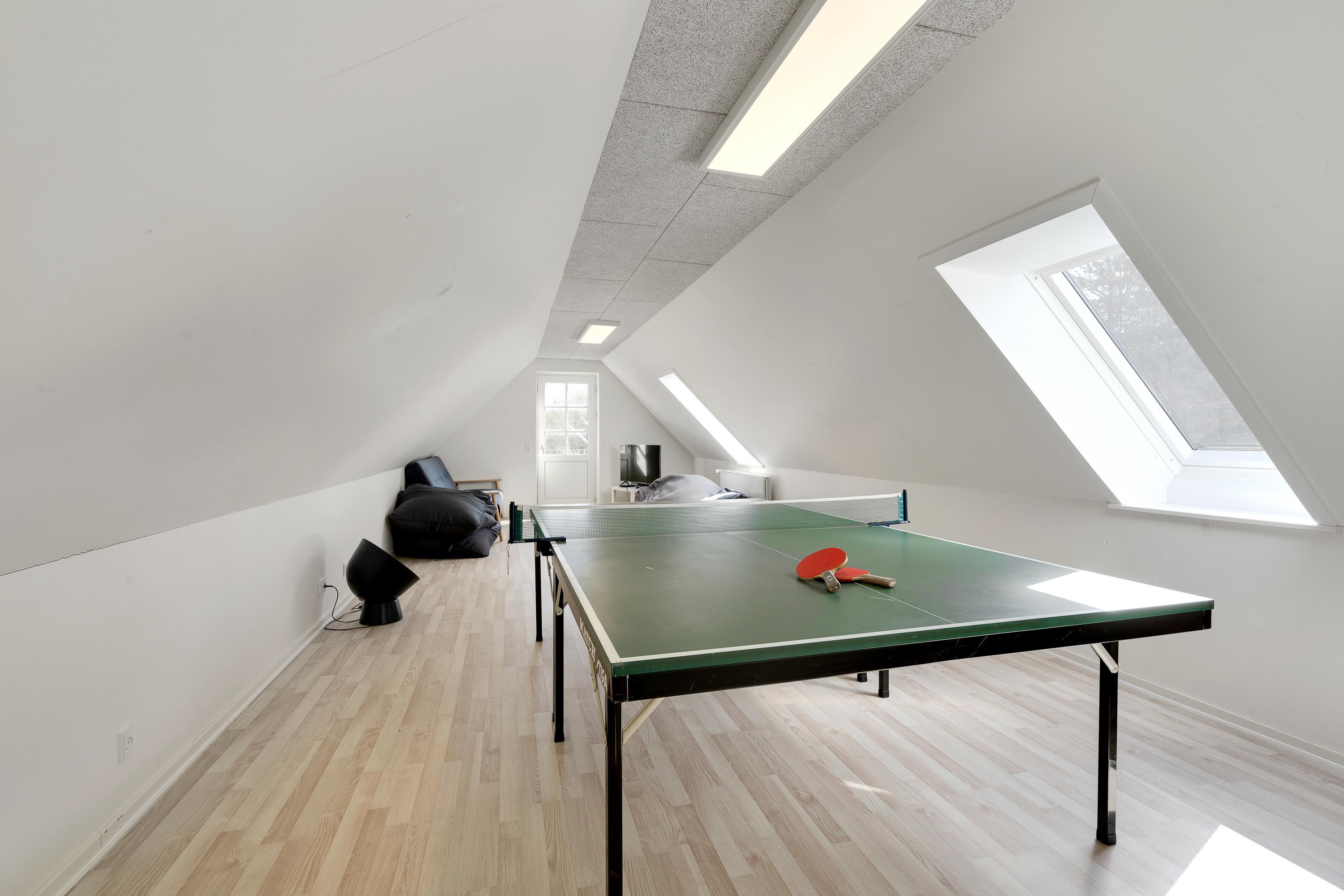 Aktivitetsrummet i feriehuset på Jegumvej 1 har både bordfodbold, bordtennis og en PlayStation3, så her kan du vinde mesterskaberne eller blot sætte dig i sækkestolene, snuppe en controller og tage et spil for sjov.