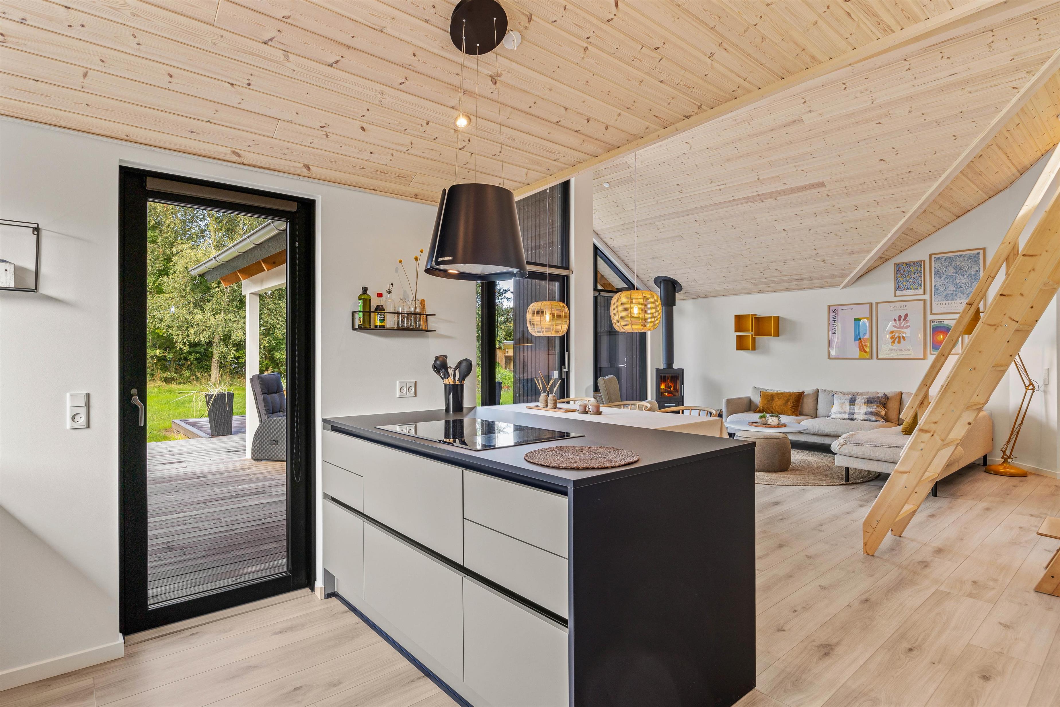 Alt imens at brændeovnens varme og hygge spreder sig i rummet. Fra alrummet kan I komme op til hemsen, hvor de store børn helt sikkert vil elske at sove i deres egen lille hule med to sovepladser.