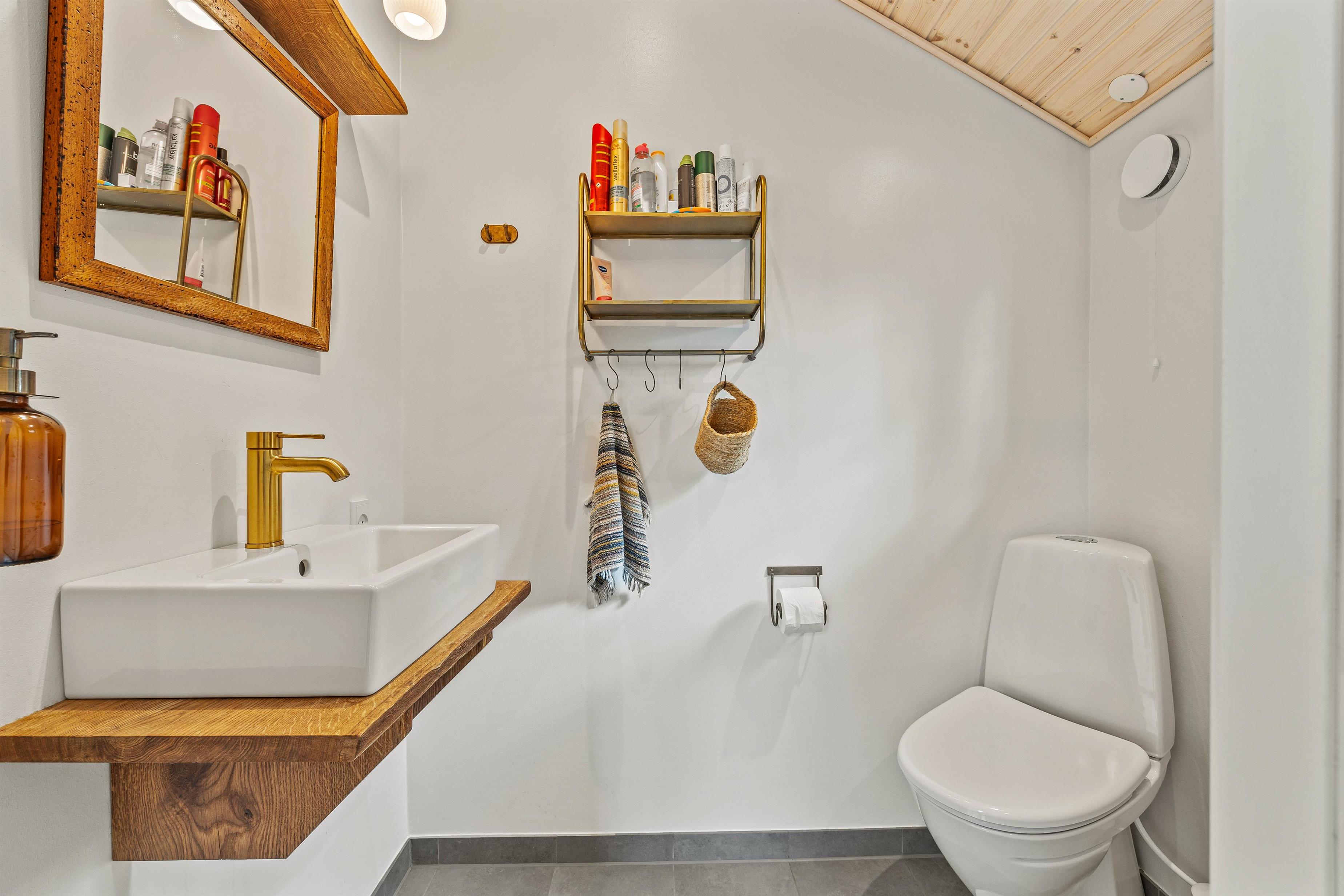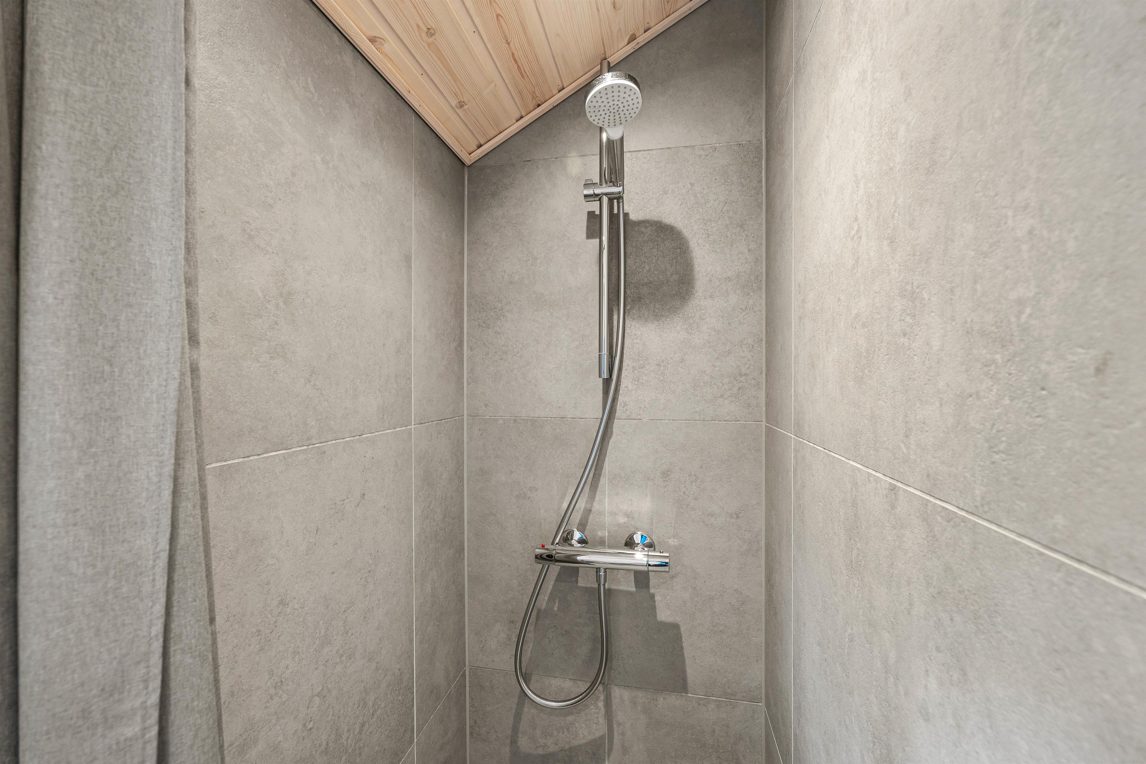 Udenfor finder I også en udendørsbruser, som er særligt praktisk, hvis man efter en lang dag kommer hjem med beskidte fødder eller bare vil tage en skyller i den friske natur.
