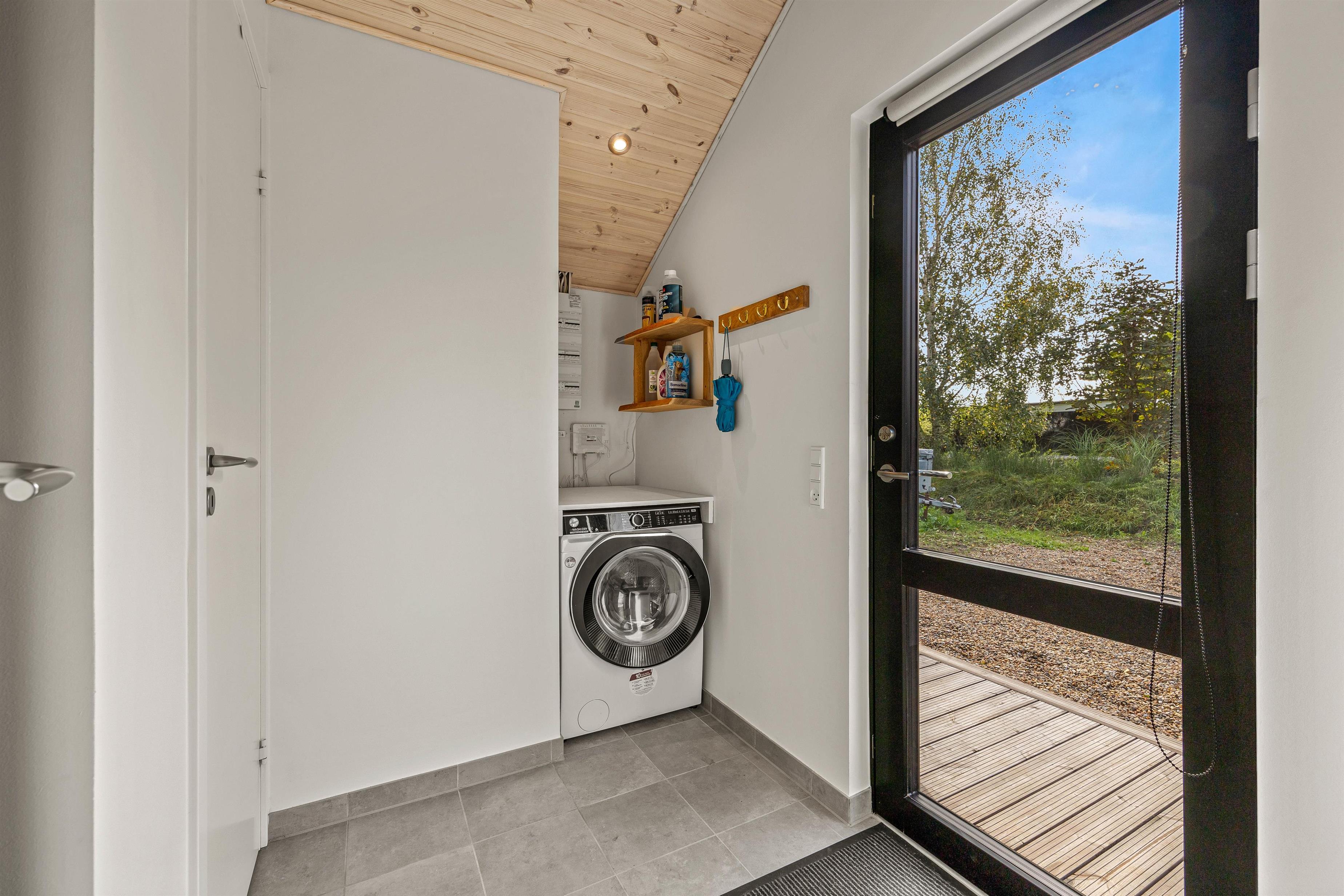 Desuden har sommerhuset to badeværelse, så I undgår at stå i kø om morgenen. Det ene badeværelse er udstyret med vaskemaskine og tørretumbler, som kombi maskine så I kan få ordnet lidt vasketøj undervejs – også superpraktisk, hvis man har småbørn med. På det andet badeværelse indbyder spaens boblende varme vand til afslapning og hvile.