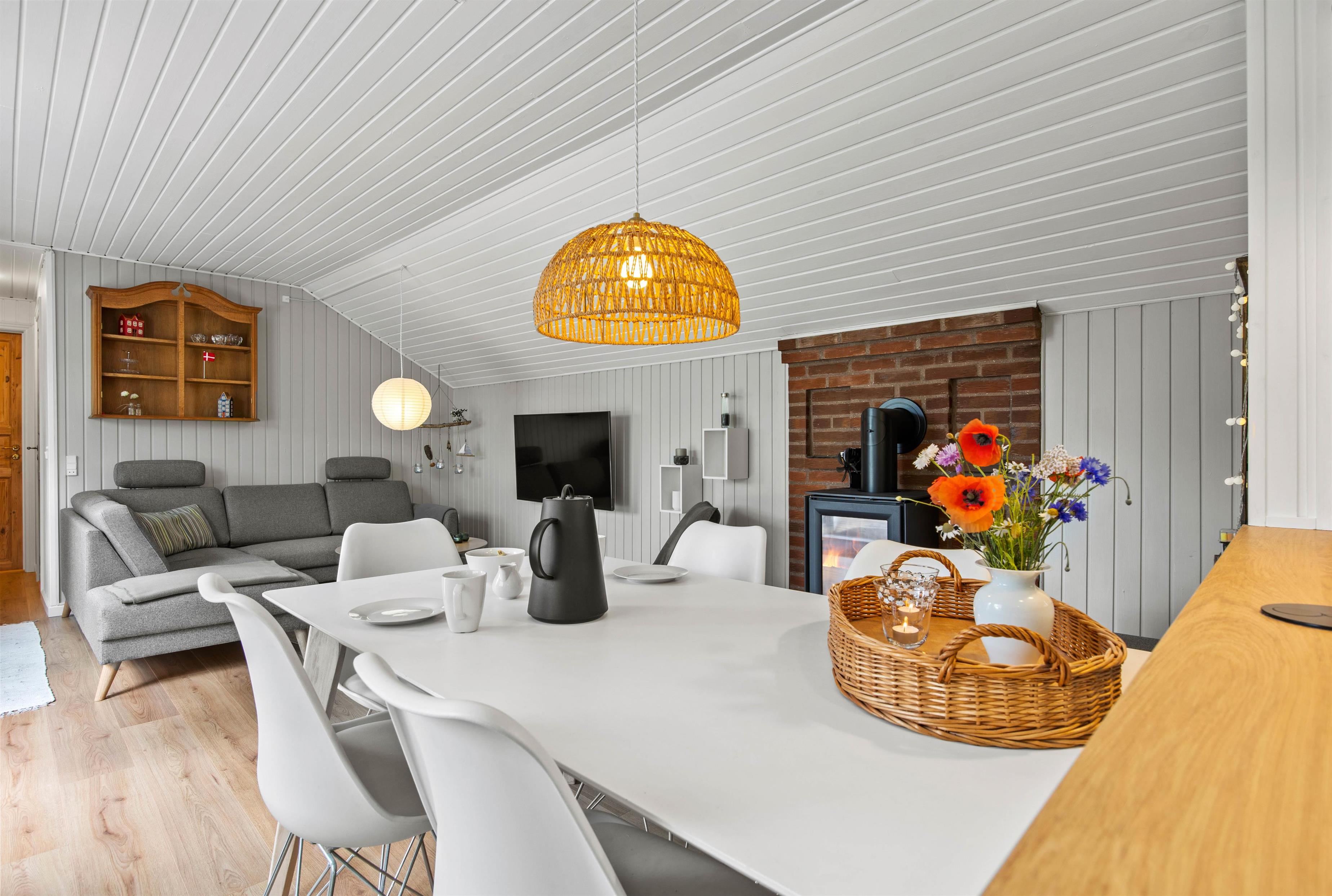 Stuen indbyder til hyggelige stunder foran brændeovnen. Her kan I nyde de knitrende flammer, mens I slapper af med en god bog eller en film. Den rummelige og lyse indretning gør stuen til det perfekte sted at samles efter en dag fyldt med aktiviteter.
