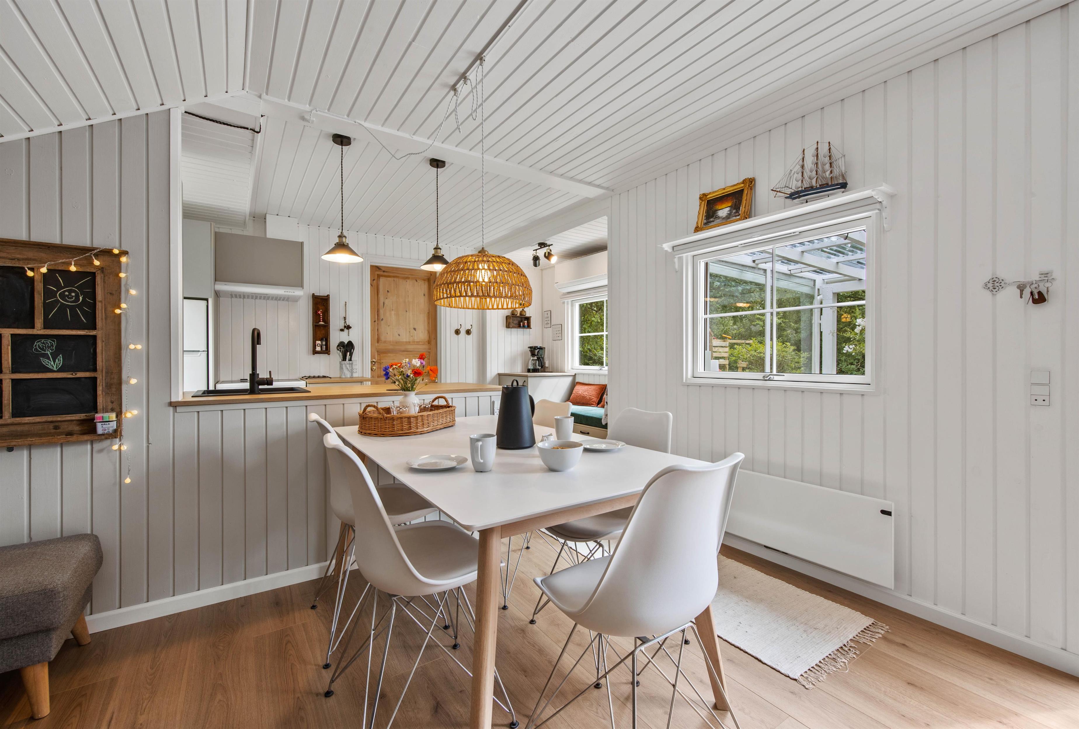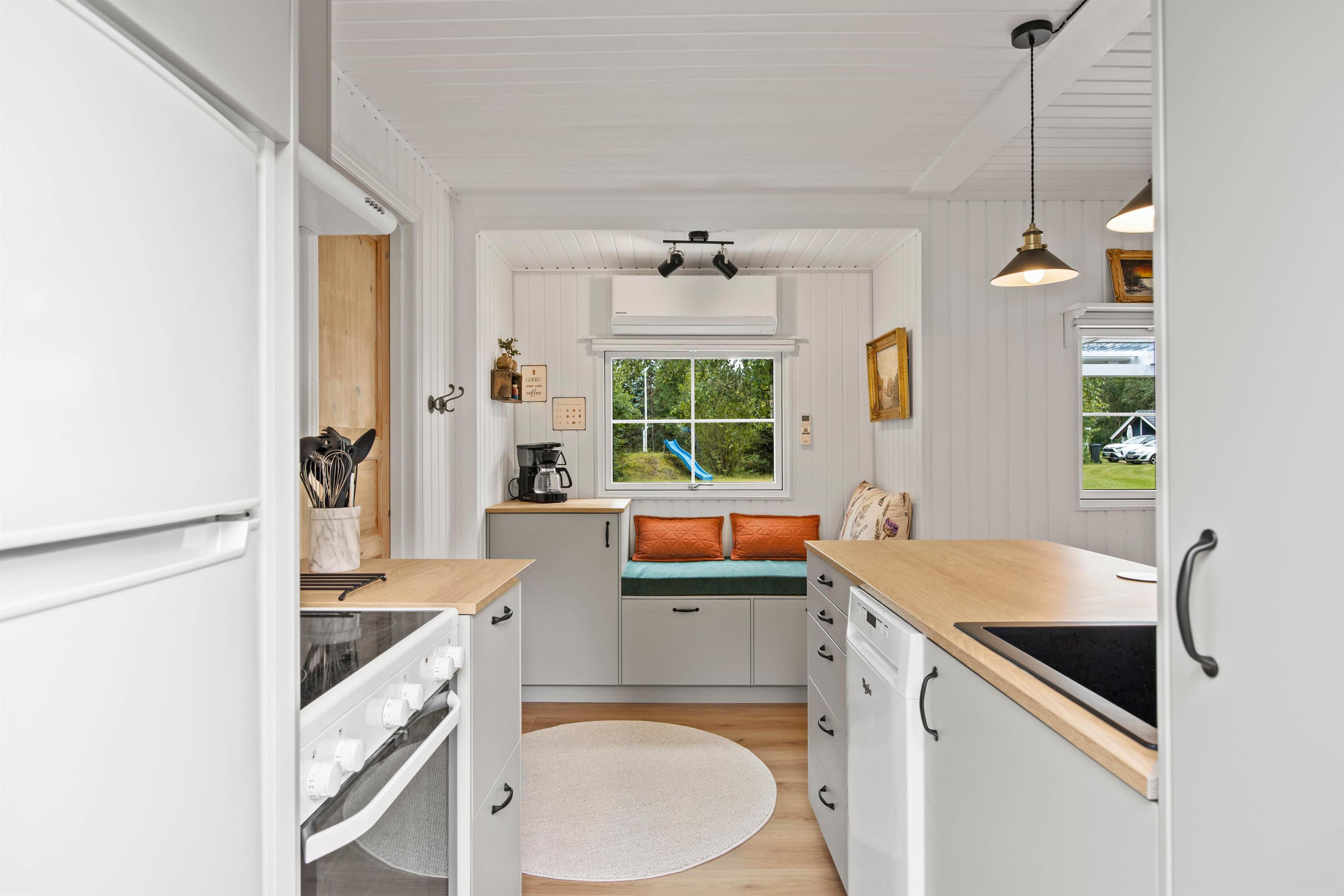 Indendørs byder dette sommerhus i Jegum Ferieland på en række bekvemmeligheder og komfortable løsninger, der sikrer en herlig ferie. Køkkenet er fuldt udstyret, så I nemt og bekvemt kan tilberede lækre måltider til familien. Opvaskemaskinen gør oprydningen til en leg, så I kan komme ud på dagens eventyr.