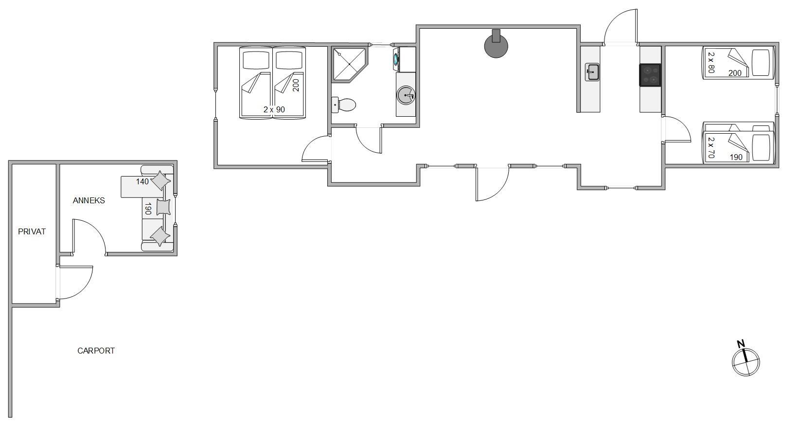 2. soverum/sengestørrelser2x70x190+2x80x200