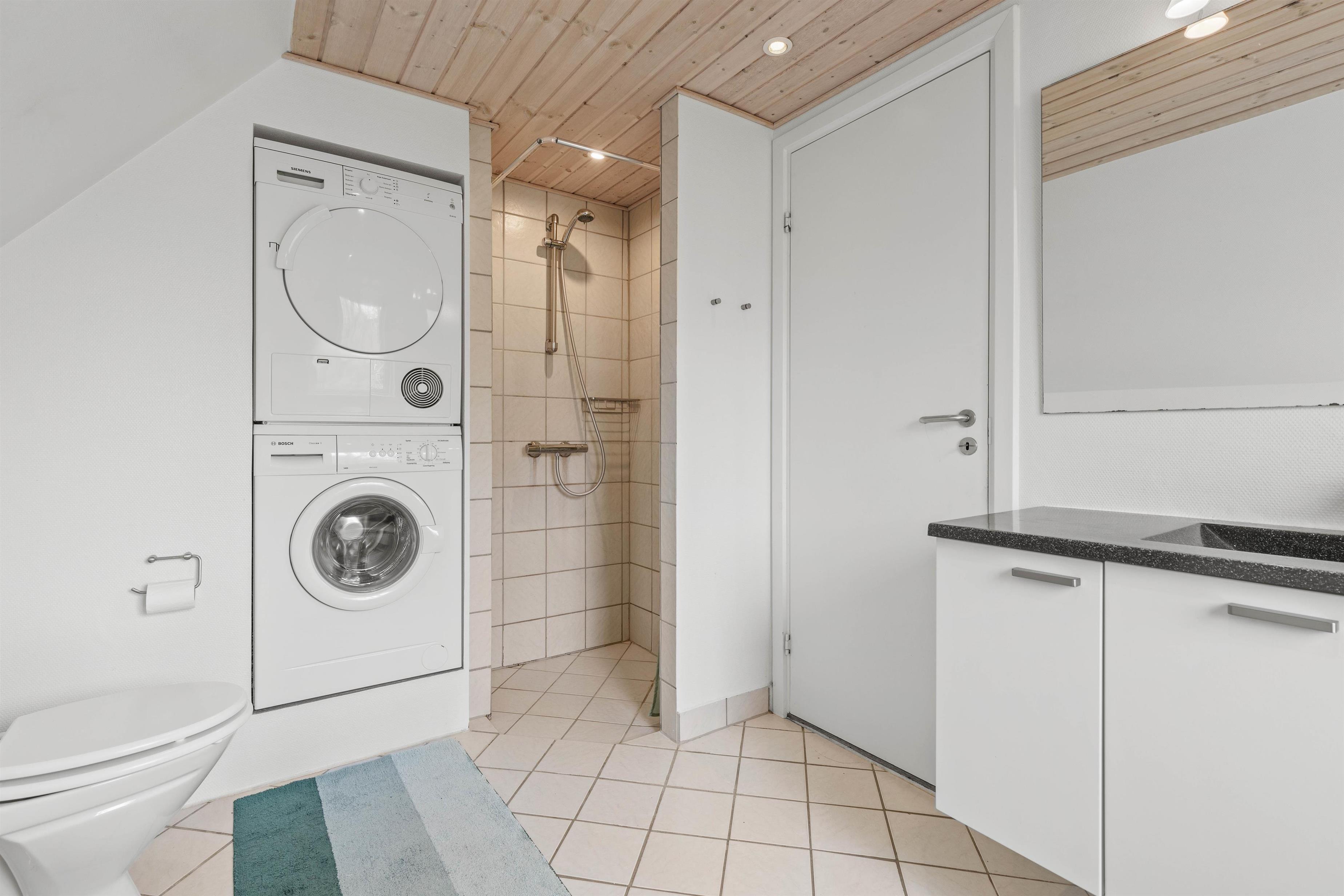 Sommerhuset tilbyder 3 soveværelser, hvoraf det ene findes på førstesalen og giver jer en privat og rolig oase at trække jer tilbage til efter en aktiv dag. I feriehusets badeværelse står der en spa til jeres rådighed, et absolut highligt at nyde varmen efter en lang tur med hunden ved Børsmose strand. Godt og praktisk er vaskemaskine og tørretumbler blevet integreret i badeværelset.