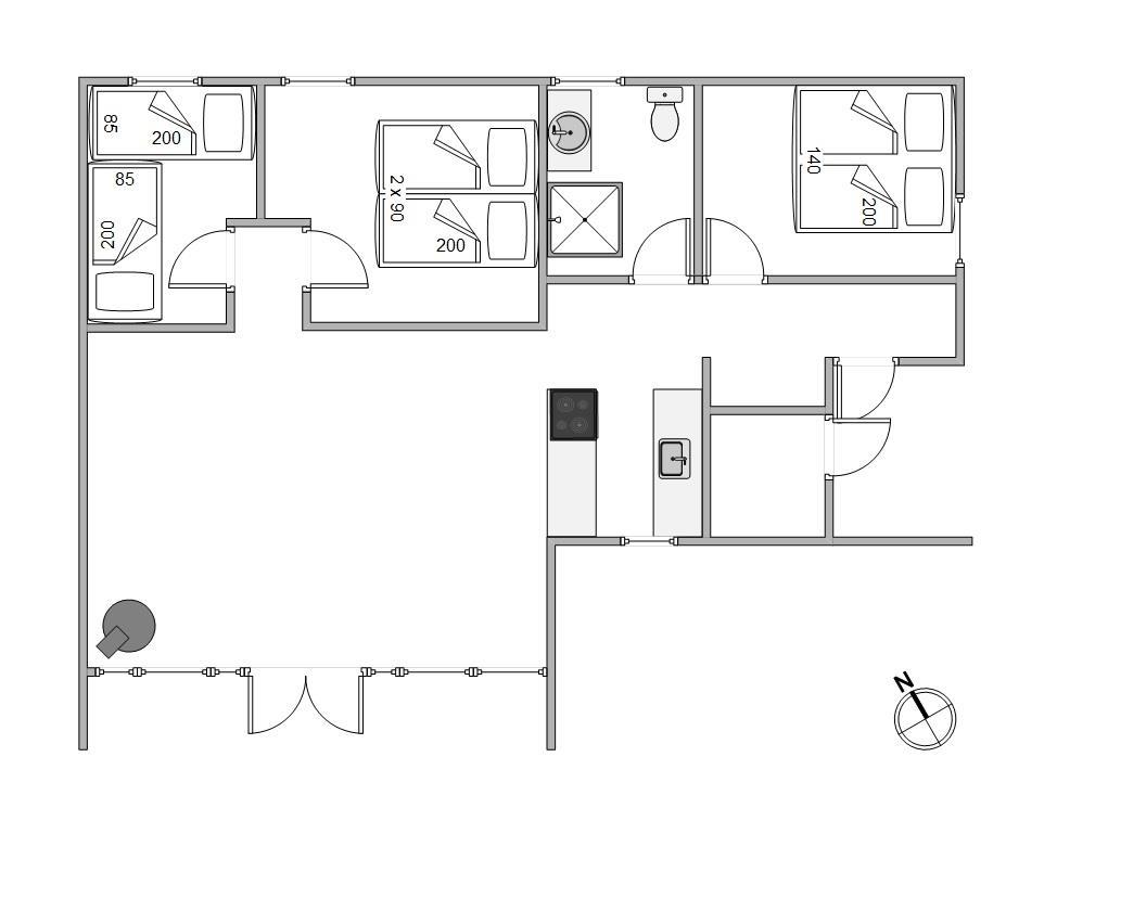 Sommerhusets 65 kvadratmeter byder desuden på 3 soveværelser, hvor I kan samle ny energi, så I er helt klar til de kommende feriedage. 2 af soveværelserne er indrettet med en dobbeltseng hver, og det tredje soveværelse er indrettet med 1 etageseng. På badeværelset er der gulvvarme, så I slipper for at starte feriedagene med kolde fødder.
