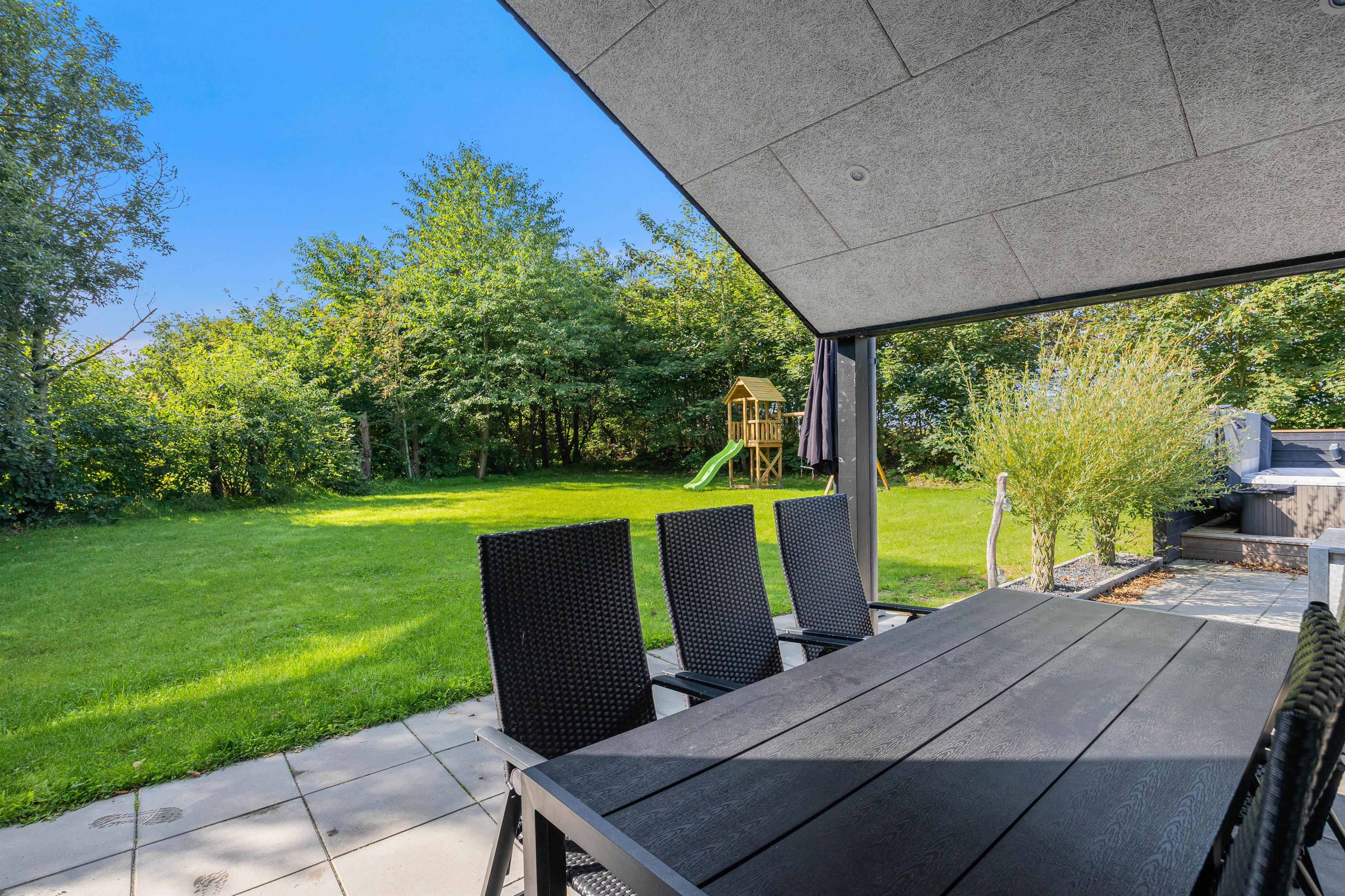 Stor grund og hyggelig terrasse med udespa og udendørs sauna
