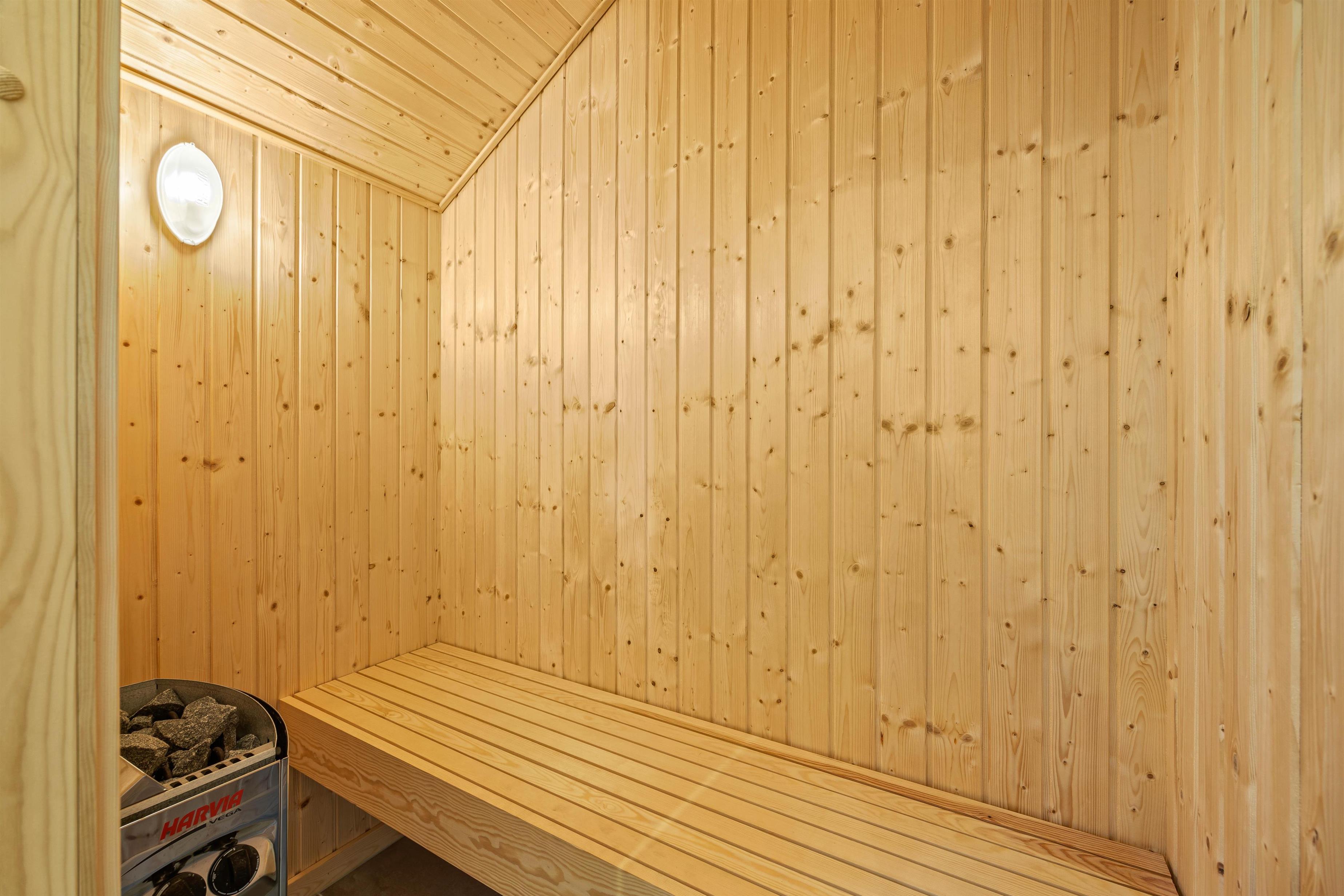 På den store, indbydende terrasse står et stort, udendørs spabad, hvor I rolig kan synke ned i de varme bobler og læne hovedet tilbage. Dertil kommer en lækker udendørs sauna, som fuldender den luksuriøse ferieoplevelse.
