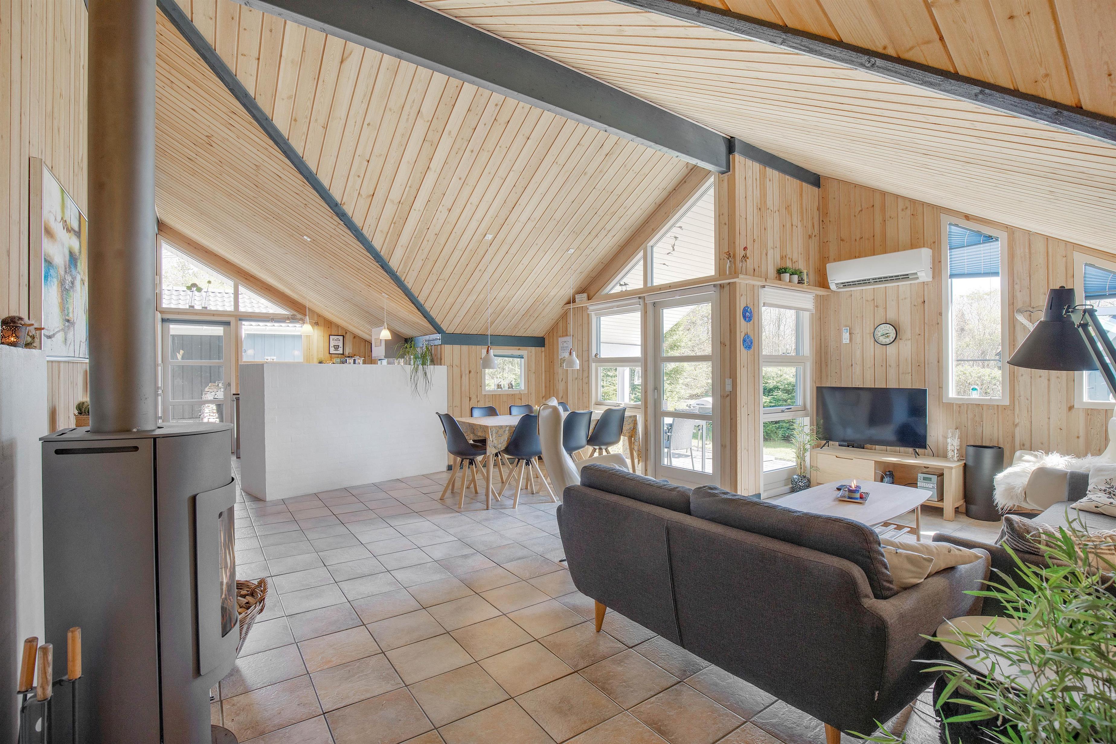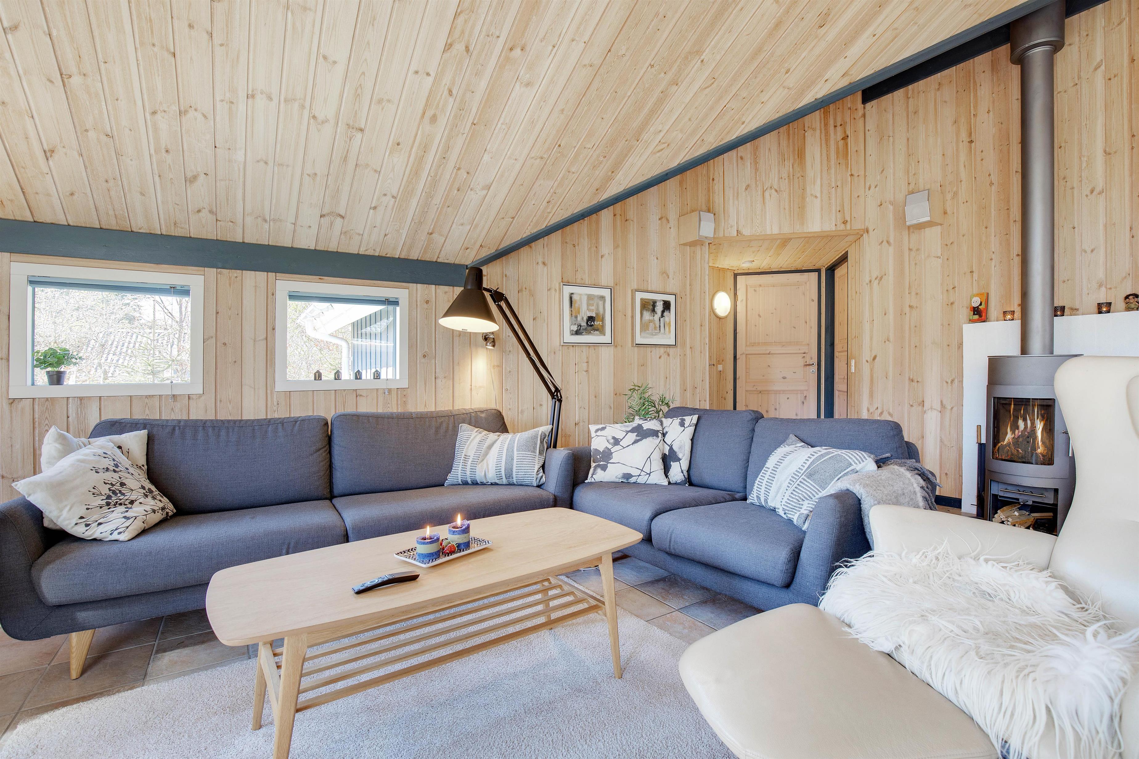 De mange hyggelige feriestunder i alrummet bliver fuldendt af brændeovnen, der knitrer i baggrunden. Og når der kræves lidt ekstra forplejning, kan I trykt hoppe ned i spaen og efterfølgende nyde varmen fra saunaen.