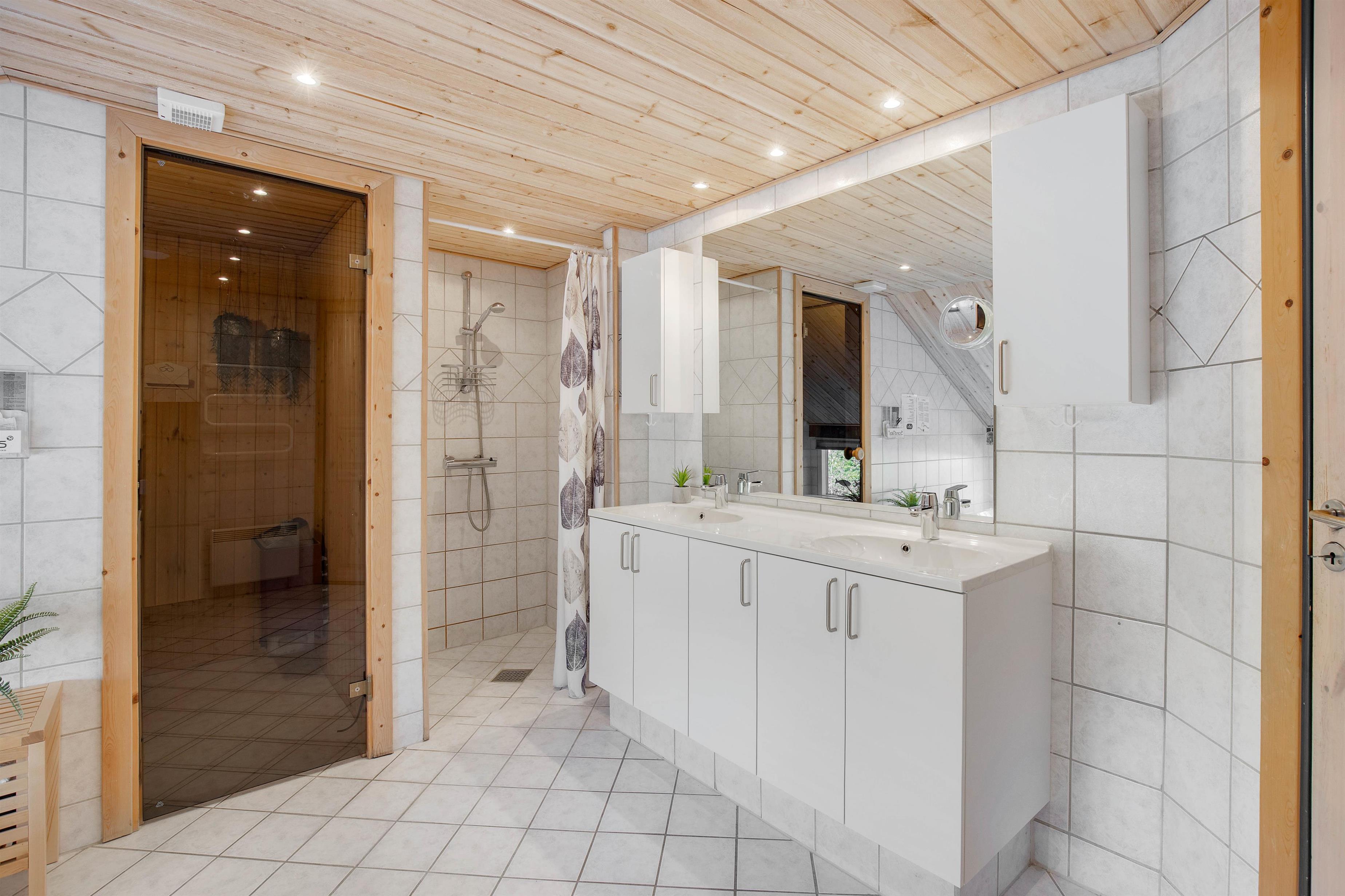 Når det er tid til at krybe til køjs, kan I søge mod sommerhusets 3 soveværelser, der alle er indrettet dobbeltsenge, hvor I kan samle ny energi. Desuden finder I også 4 sovepladser i annekset og 2 badeværelser i sommerhuset med gulvvarme.