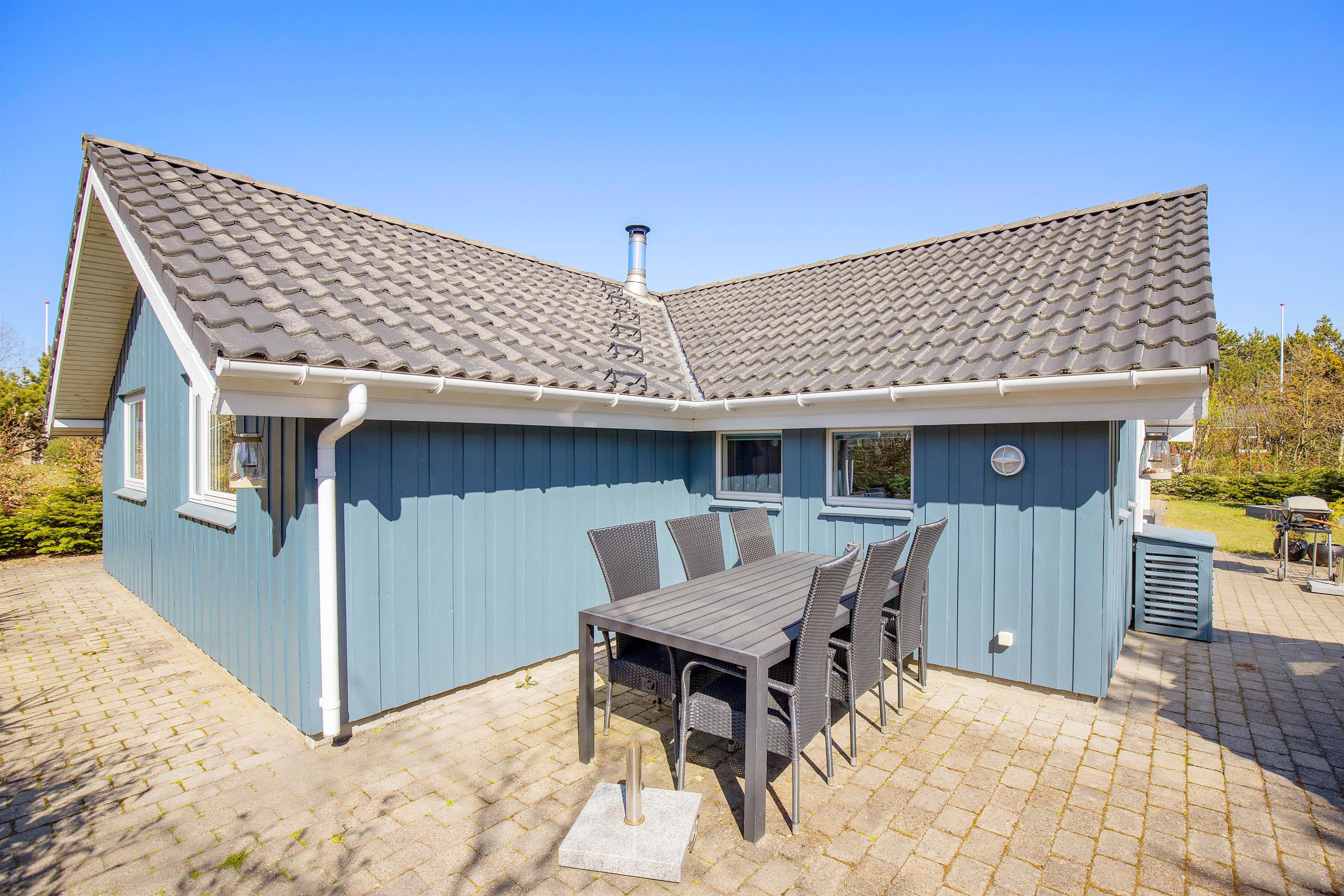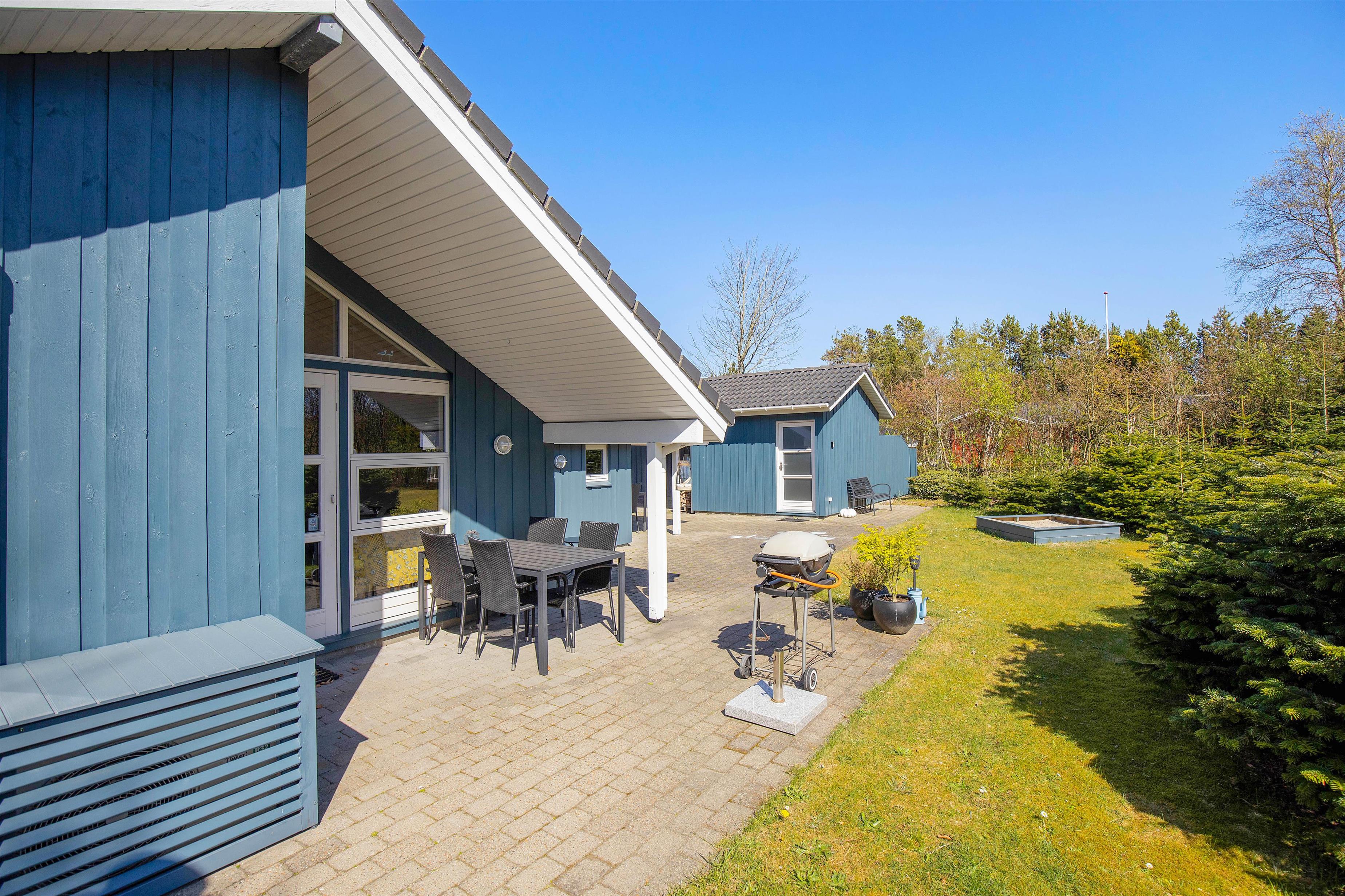 Til feriens yngste er der både en sandkasse og et gyngestativ i haven. Mens de leger i haven, kan de voksne slappe af på terrassen, hvor I har havemøbler og liggestole til rådighed, som I kan finde jer til rette i på et godt solspot. Om aftenen kan I alle samles på terrassen til en lækker middag, som I kan tilberede på feriehusets gasgrill.