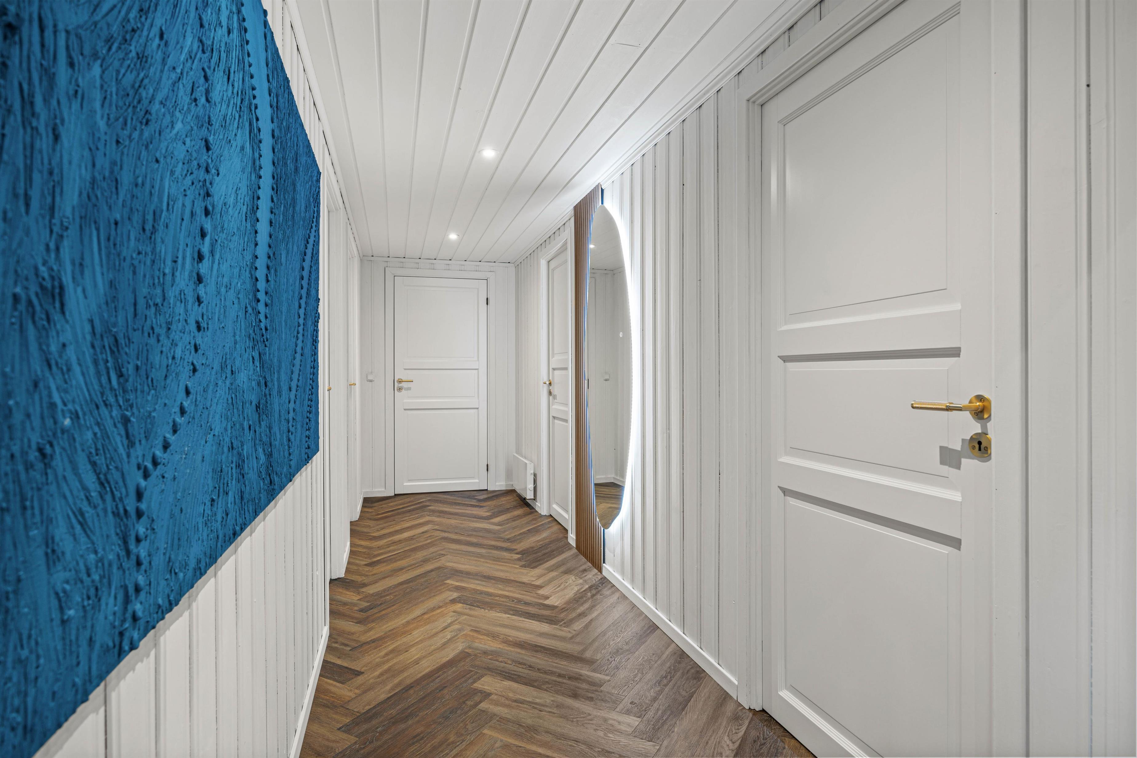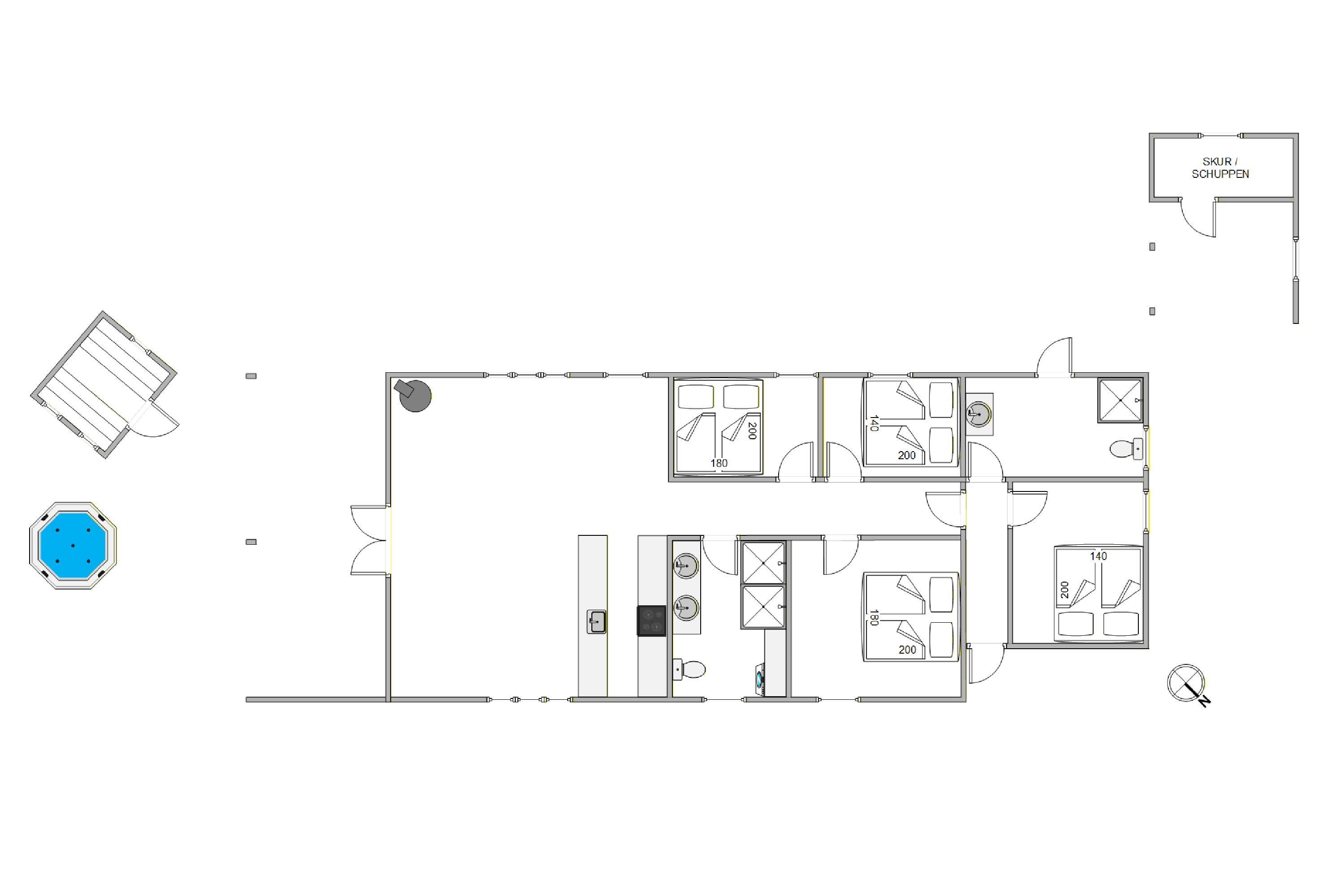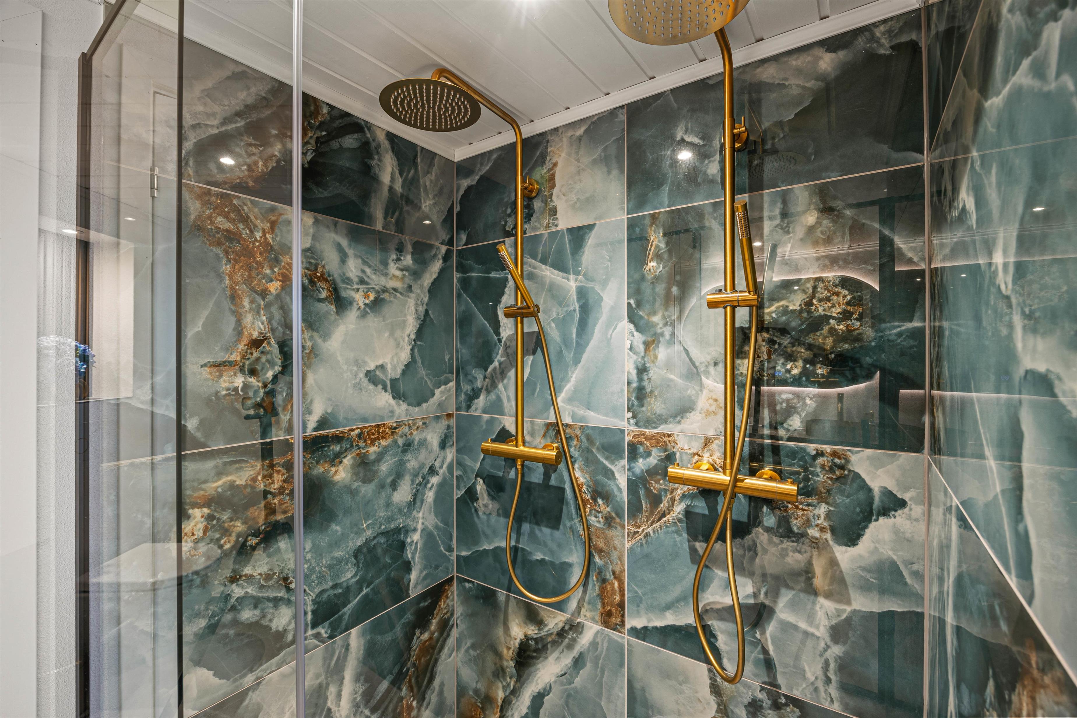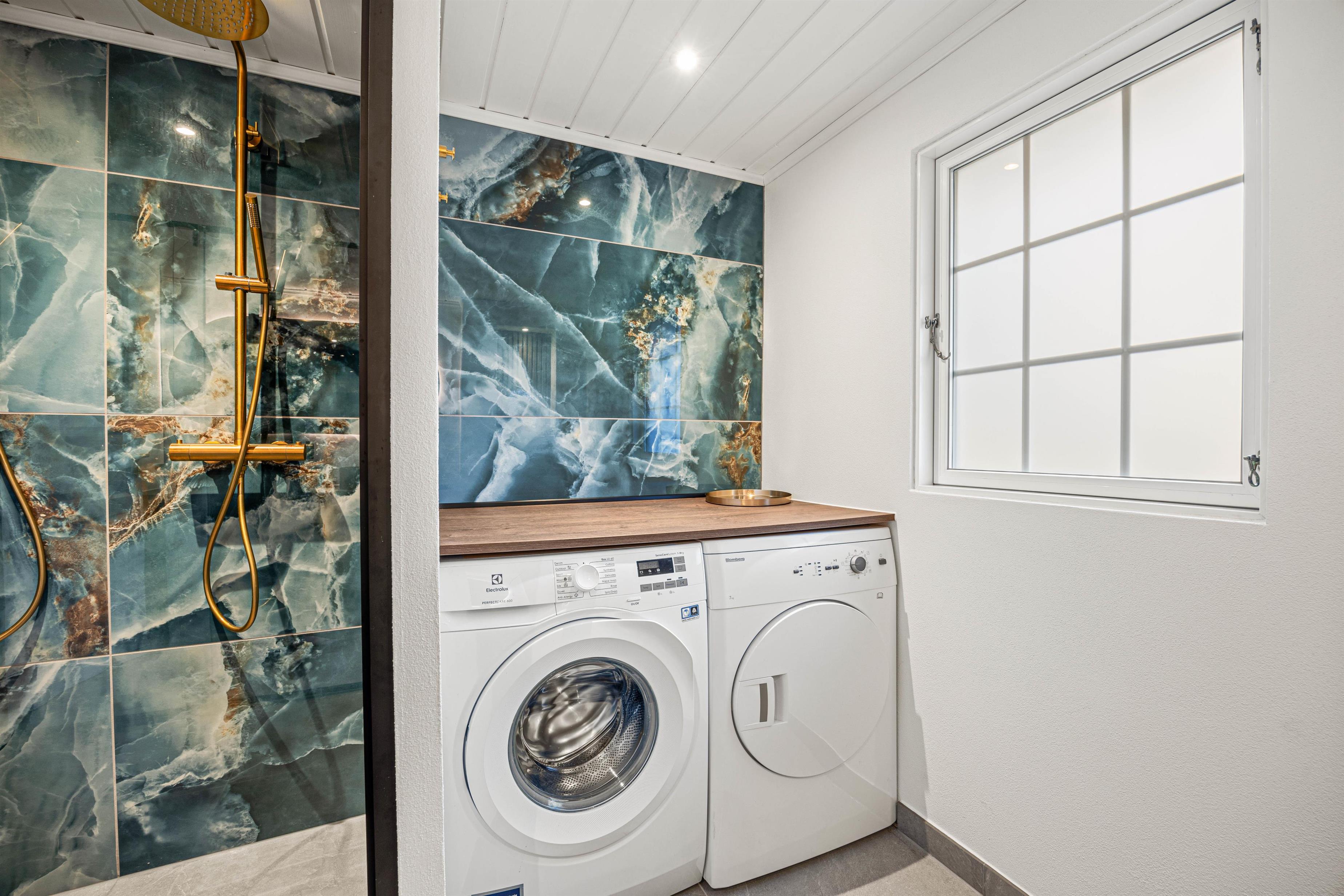 Huset har 2 badeværelser med gulvvarme, og på det ene er der også både vaskemaskine og tørretumbler, samt en dobbelt bruser. De 4 indbydende soveværelser, hvilket gør det nemt at fordele sig. Alle med dobbeltsenge, hvilket giver perfekte rammer for en god nats søvn og ro til alle gæster.