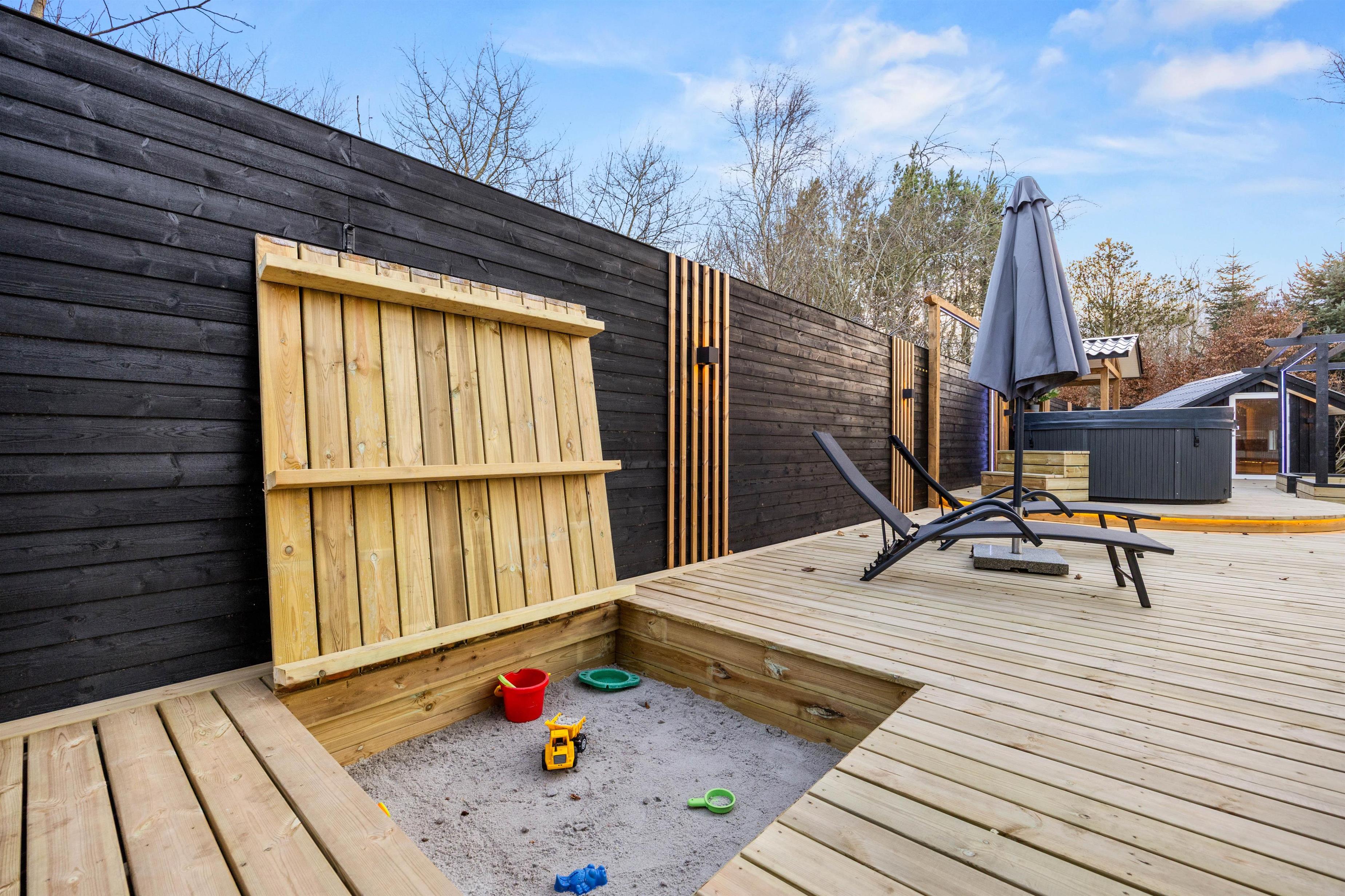Børnene vil elske sandkassen, gyngen og trampolinen, hvor de kan lege frit. Bålstedet inviterer til hyggelige stunder med snobrød, skumfiduser eller bare at sidde sammen og nyde varmen, mens mørket falder på. Mini-baren på terrassen gør det festligt at forblive hydreret. Udendørsområdet fuldendes af udespaen og udendørssaunaen, hvor I kan slappe af efter aktive dage. Nyd et varmt bad i udespaernes bobler eller et saunabesøg under åben himmel.