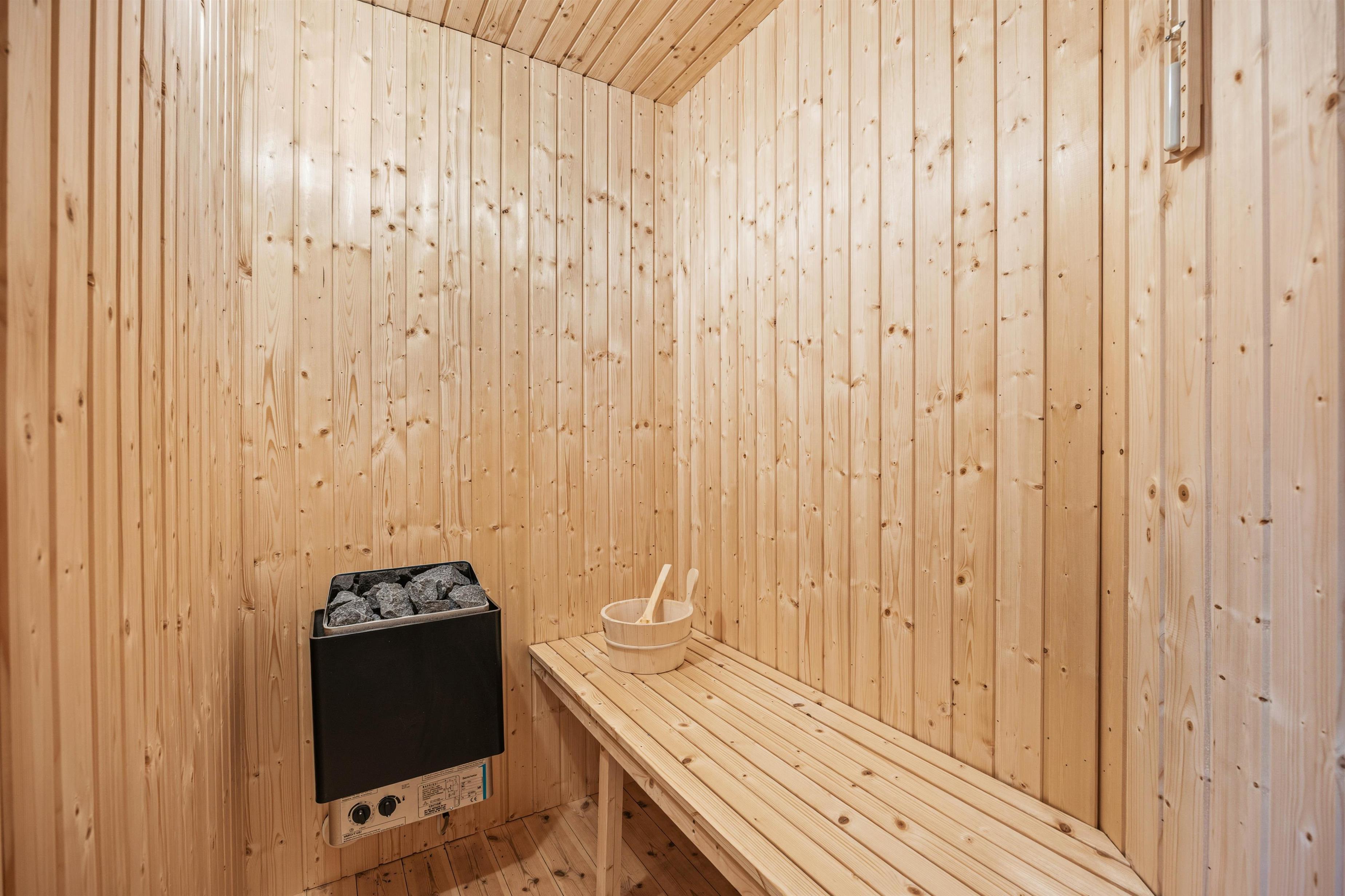 I det åbne køkken kan I nyde hyggelige madlavningsaftener sammen, mens opvaskemaskinen klarer opvasken for jer – så der er mere tid til alt det sjove. Hvad med et langt saunabesøg eller et afslappende bad i tømmespaen? Begge dele finder I på det store badeværelse, som også har gulvvarme og vaskemaskine.