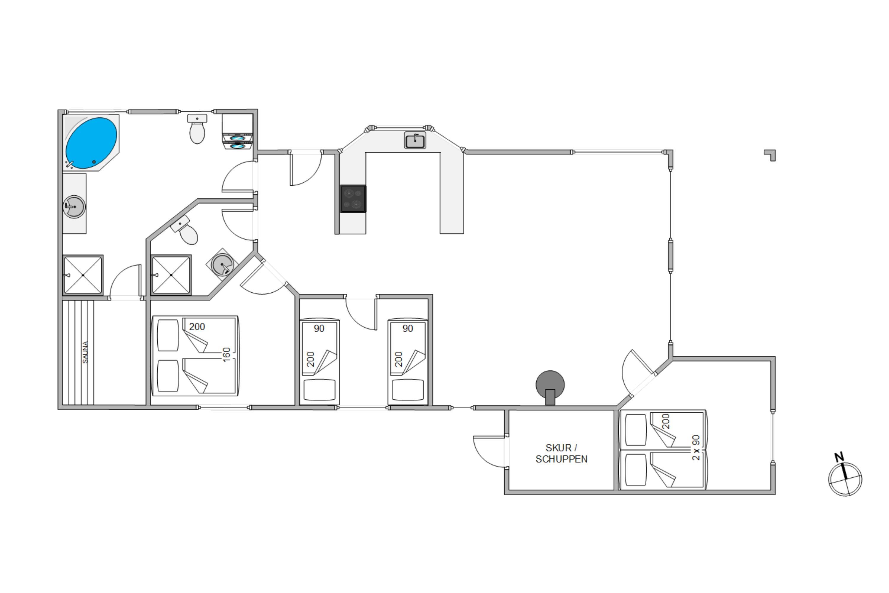 Sommerhuset råder over 2 badeværelser, det ene har spa og sauna. Så trænger I til at få løsnet op i kroppen, er der rig mulighed for det.