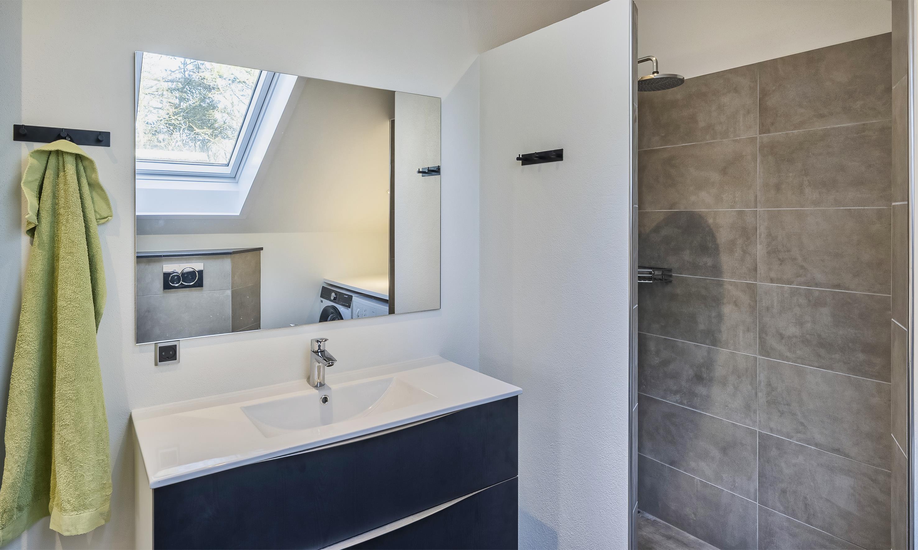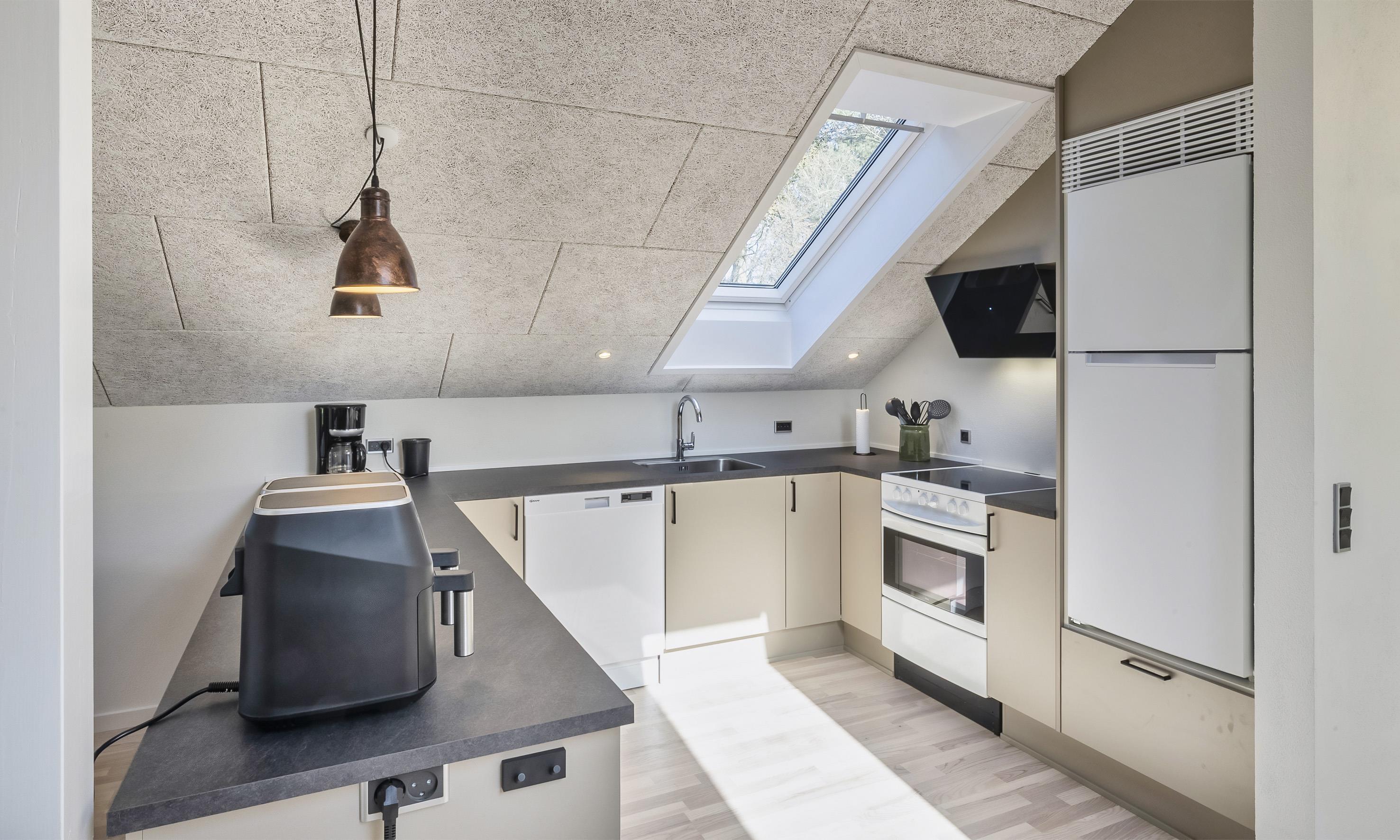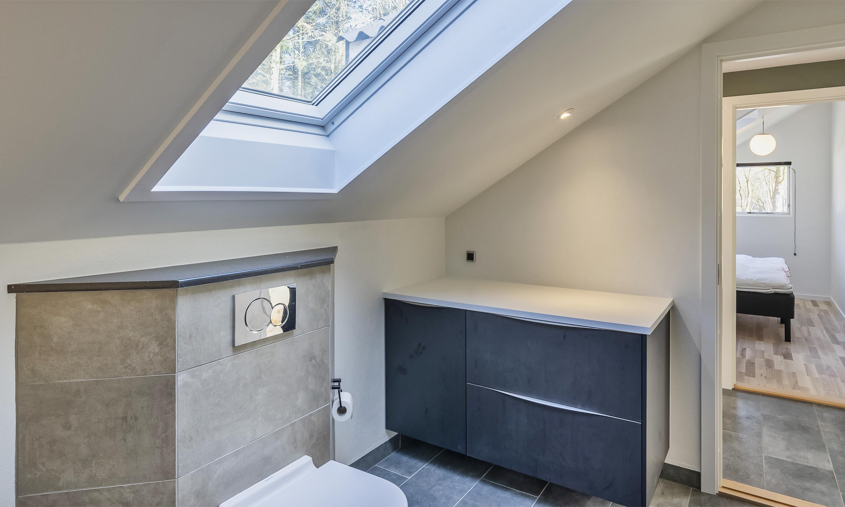 Huset fremstår som nyt med et godt lysindfald og indeholder indgangsparti med plads til fodtøj. Køkken, spiseplads og stue med udgang til have og terrasse. Badeværelse med toilet, håndvask og bruser samt vaskemaskine og tørretumbler. Gæstetoilet. I huset er der 3 soveværelser. 2 med dobbeltseng og 1 med 2 enkeltsenge. I hele huset er der gulvvarme fra det energivenlige luft/vand varmesystem.