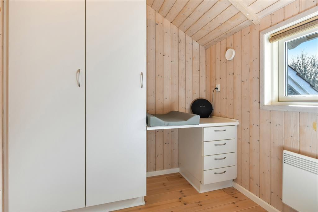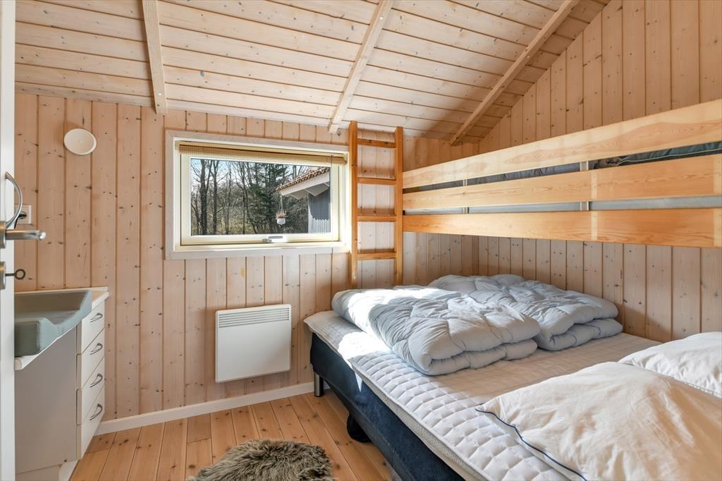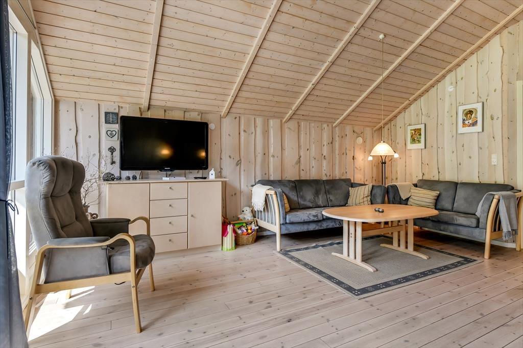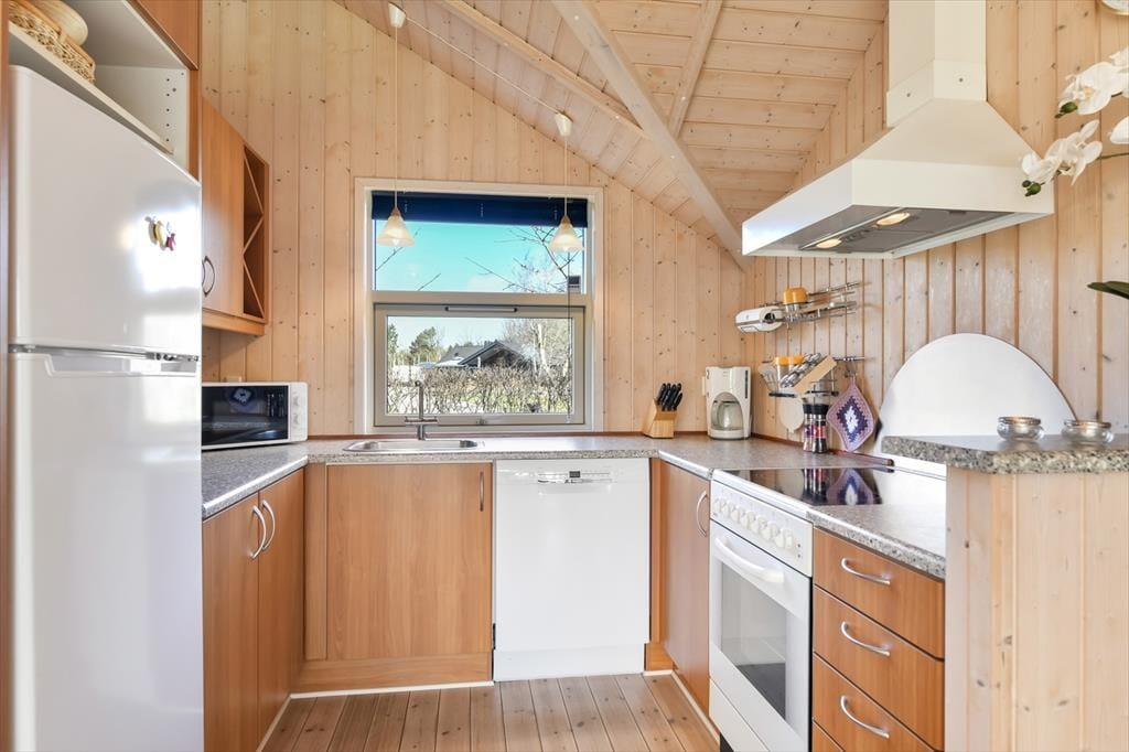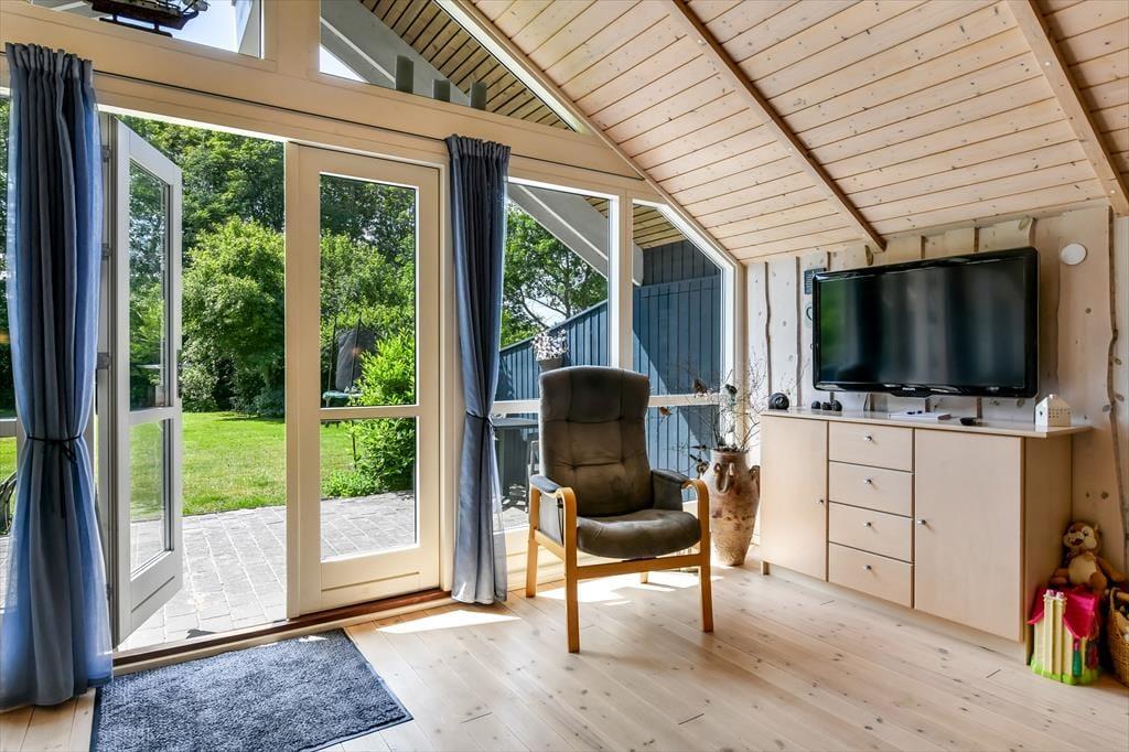 Træd ind i et lyst og venligt sommerhus, hvor indretningen indbyder til afslapning og kvalitetstid. De store vinduespartier lukker dagslyset ind og giver et dejligt kig ud til haven og den omkringliggende natur. Køkken og stue ligger i åben forbindelse, så hele familien kan være sammen – uanset om I laver mad, spiller spil eller slapper af med en god film. Indretningen er funktionel og hyggelig, og der er tænkt på, at I skal føle jer hjemme fra første ferieøjeblik. Varmen fra brændeovnen spreder sig hurtigt og gør det ekstra rart at nyde en stille stund, når aftenen falder på. Her er det let at koble af og lade ferieroen sænke sig.