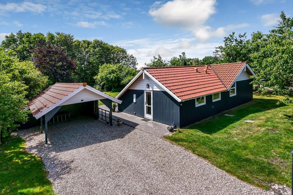 Her får du feriestemning i børnehøjde og fredelige omgivelser i naturskønne Jegum. På Blomstervangen 44 venter et hyggeligt sommerhus med masser af plads til både leg, afslapning og fælles stunder – alt sammen på en lukket og privat grund, omkranset af høje træer og fuglesang.