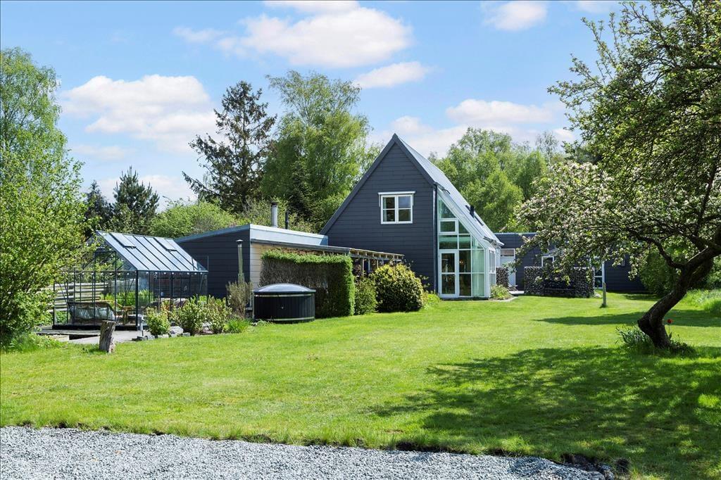 Huset beliggenhed er helt unik. Tæt på by, strand, skov og med naturen lige uden for døren. Huset er beliggende på en 4000 m2 stor grund, hvor der er god plads til det meste.