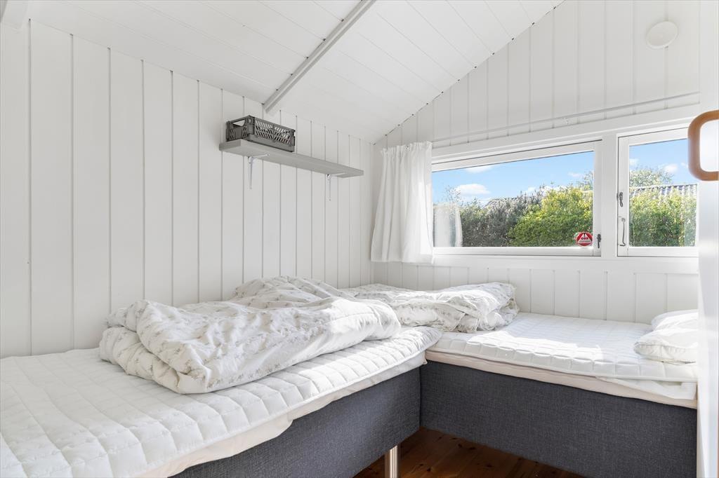 Sommerhuset har fire komfortable værelser med plads til 8 personer. 2 af værelserne er udstyret med dobbeltsenge, mens de 2 andre værelser har hver 2 enkeltsenge, hvilket gør det til det ideelle sted for familien.