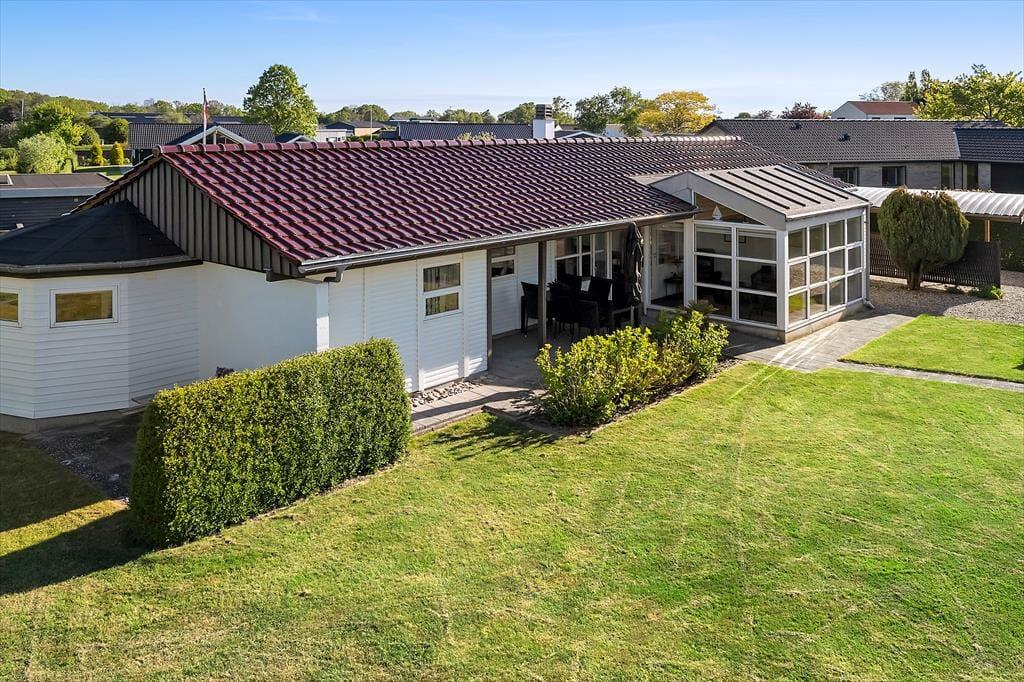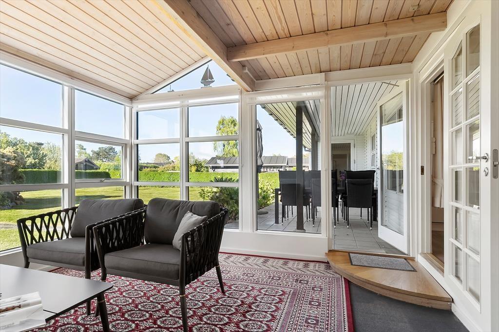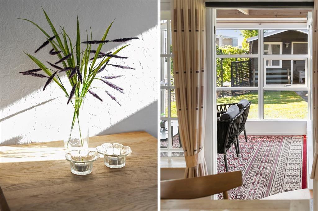 Sommerhuset indeholder en stue, et køkken, to soveværelser og et badeværelse. Derudover er der et fint anneks med to enkeltsenge, så her er der god plads til op til seks personer. På begge sider af huset finder du hyggelige udestuer, der forlænger sommeren og gør det muligt at nyde udelivet helt ind i efteråret.