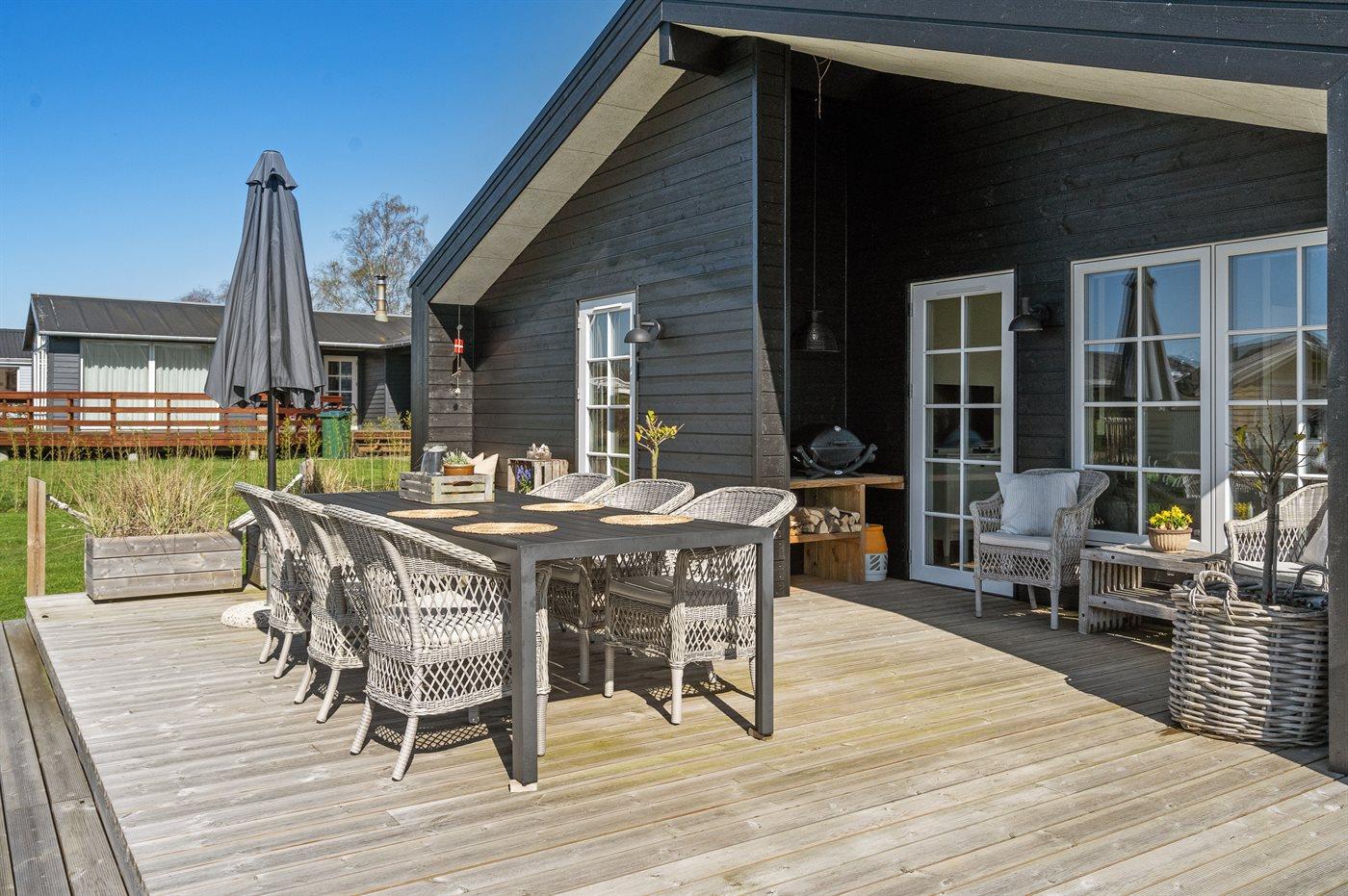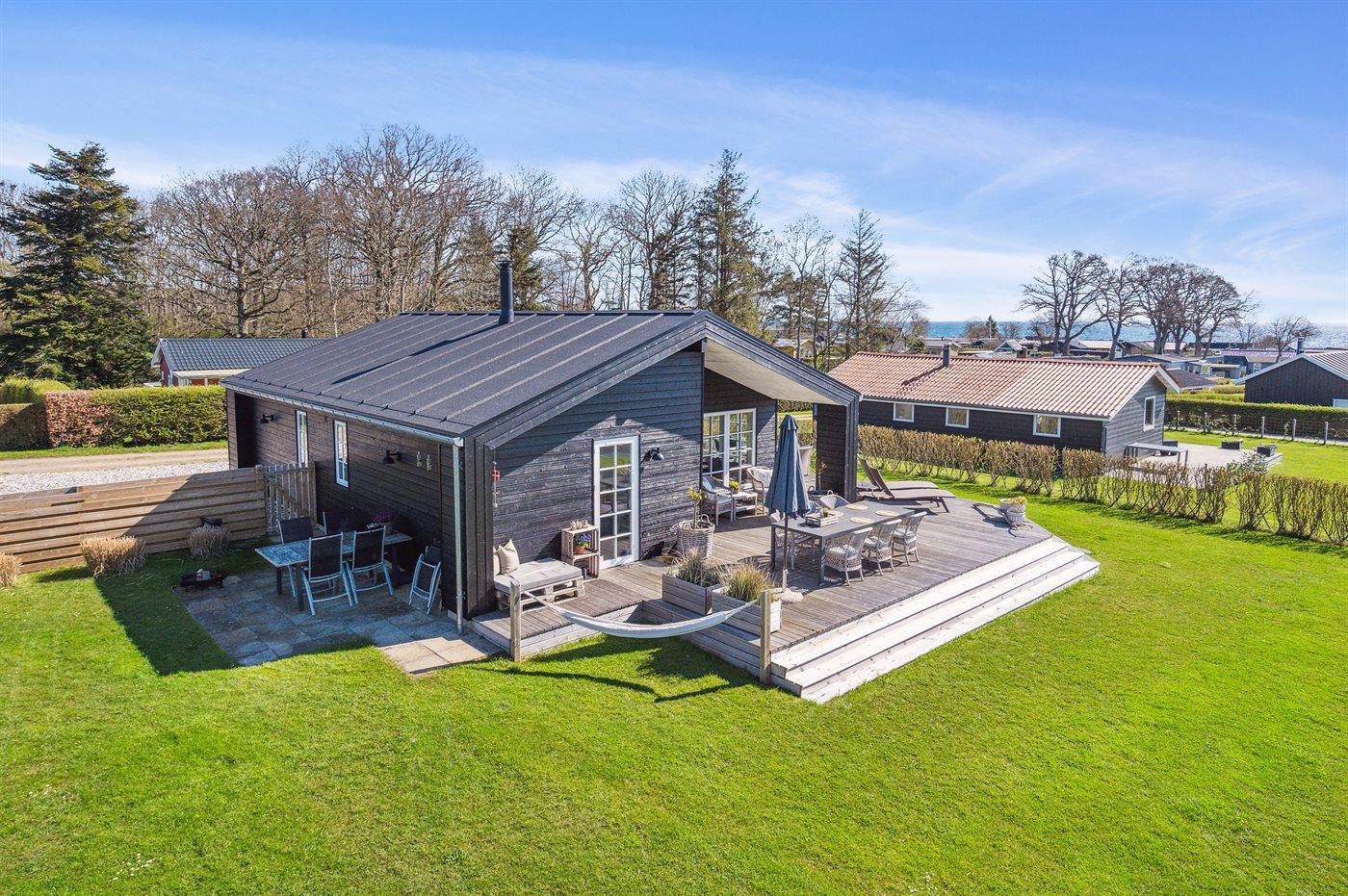 Nyere sommerhus ved As Vig med havudsigt, terrasse og tæt på stranden i Juelsminde.