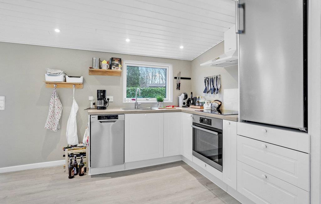 Glæd jer til husets hyggelige og moderne indretning, som er i en lys og enkel farveskala. Der er mange gode hjørner, hvor I kan sætte jer med en god bog eller en kop kaffe og nyder nogle stille dage uden for meget program. Udestuen giver jer et ekstra rum til dagens måltider eller en plads i solen på de kølige dage.