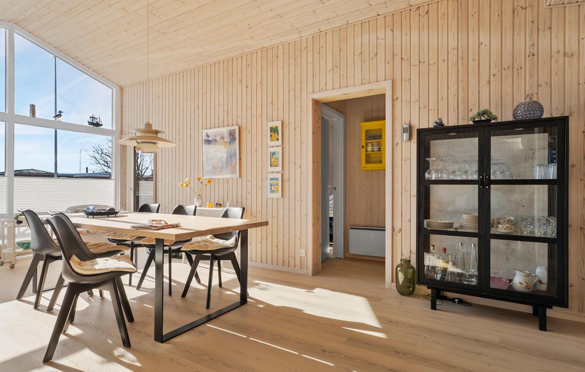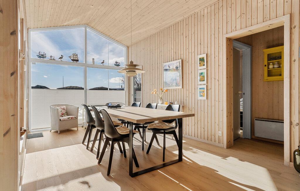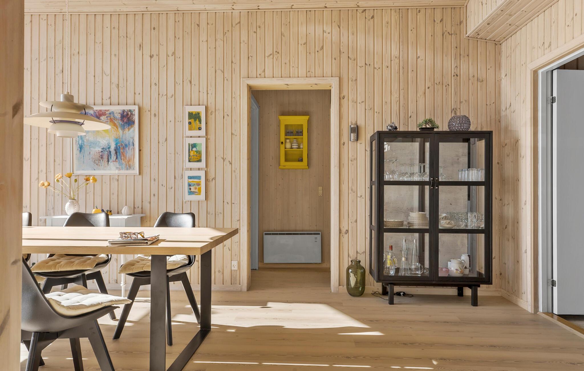 Nyd nogle afslappende dage i jeres sommerhus i Juelsminde, lige på toppen af ??Bjørnsknude. Oplev ægte skandinavisk hygge i jeres hjem. Opholdsstuen med højt til loftet, store vinduespartier og masser af træ byder på en hyggelig opholdsstemning. Slå jer ned i den komfortable sofa og slap af med en god bog eller en hyggelig filmaften. Den åbne spiseplads med sine moderne møbler lægger op til hyggestunder, mens det stilrene køkken, der også har en træstil, inspirerer til at lave mad sammen.