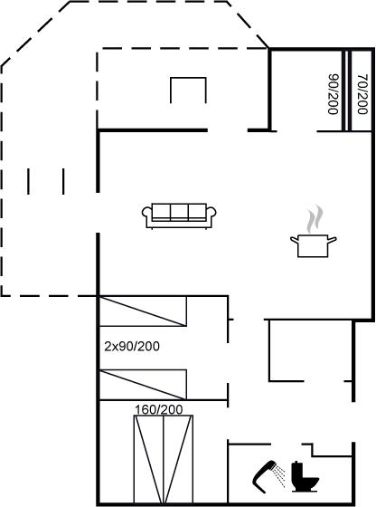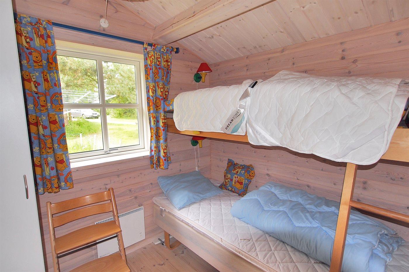 Der er i alt 3 soveværelser. Sovepladserne fordeler sig på: 2 sovepladser i dobbeltseng. 2 sovepladser i enkeltsenge. 2 sovepladser i køjeseng. Derudover er der 1 stk. barneseng.