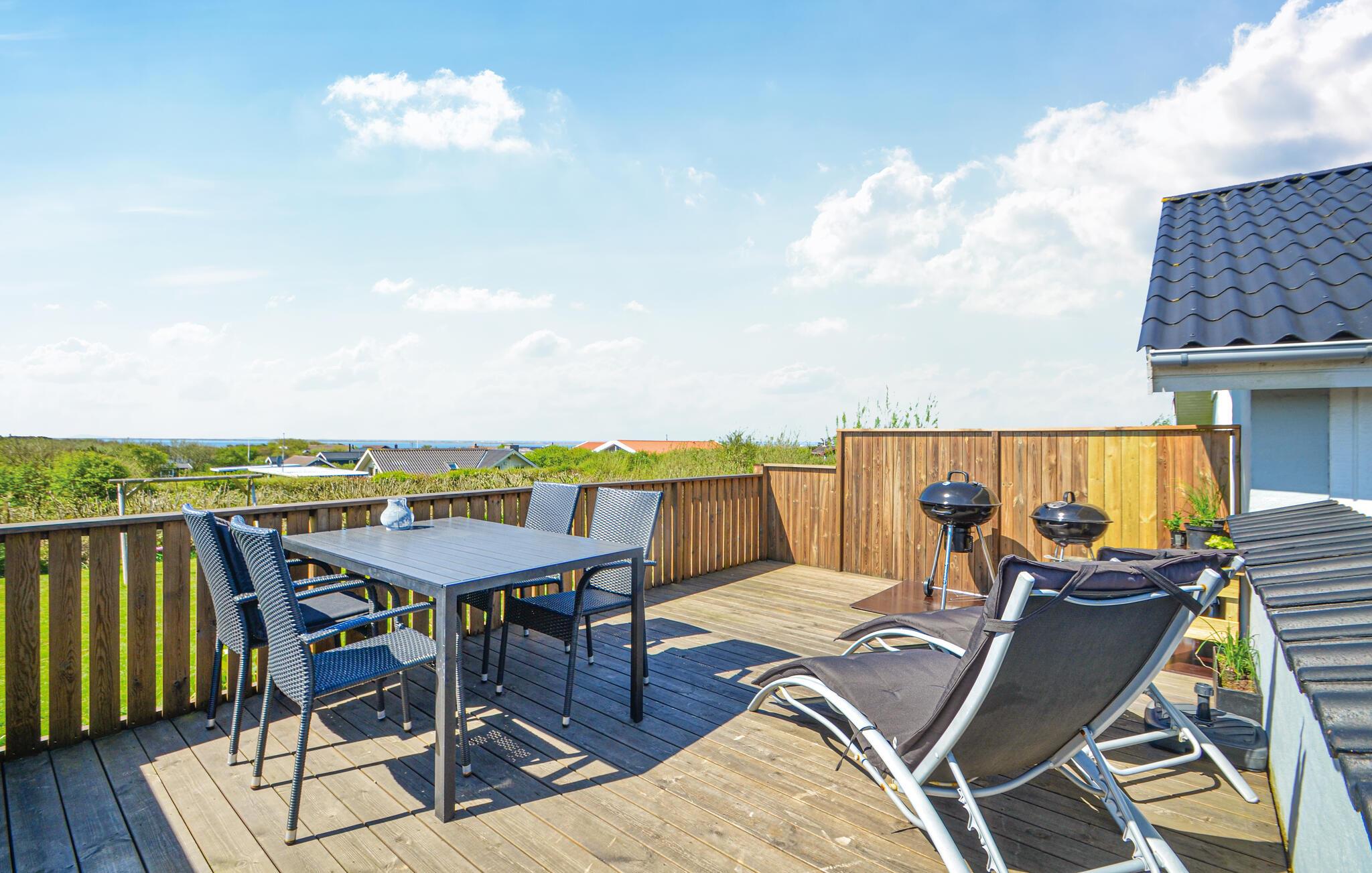 På terrassen kan I både nyde udsigten og solbade i fred og ro, da den er helt lukket med hegn varierende mellem 80 og 180 cm højde. Huset råder endvidere over en højhastigheds fibernetforbindelse med ubegrænset data, så der er rig mulighed for surfing på nettet, streamning af film m.v.