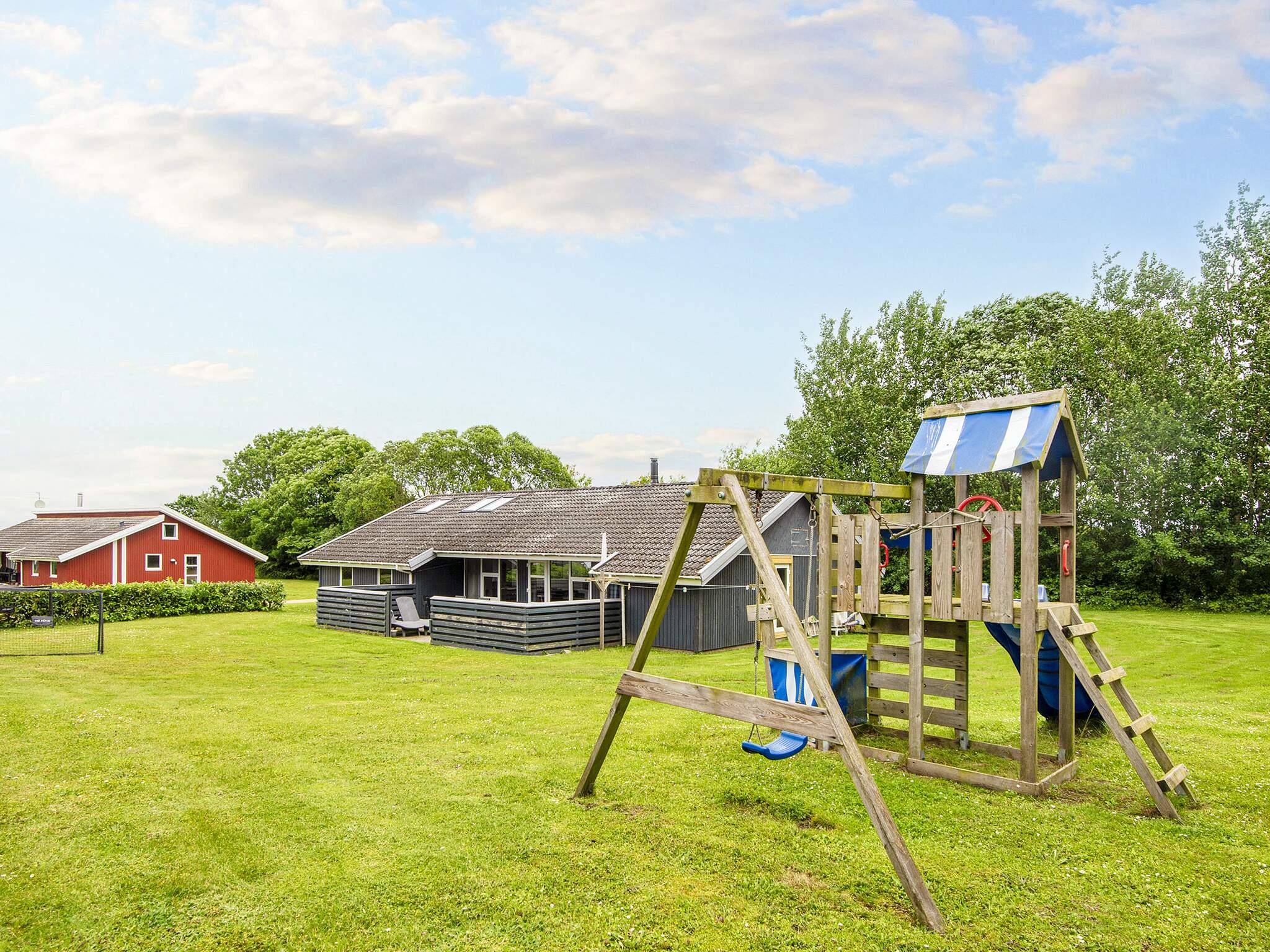 Den lukkede terrasse er indrettet med havemøbler og grill, hvilket gør den ideel til at nyde solrige sommerdage. Børn kan lege trygt på gyngerne eller i sandkassen, mens de voksne slapper af. I opholdsstuen er der tv med Stofa-kanaler, og brændeovnen tilføjer ekstra varme på køligere aftener.
