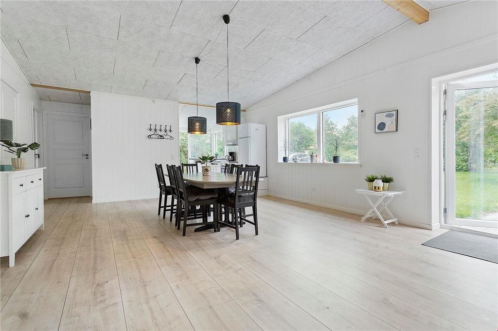 Feriehuset er indrettet med kombineret køkken og opholdsstue. Lyst åbent køkken med keramisk komfur, mikroovn, opvaskemaskine, vaskemaskine og køleskab med fryser. Opholdsstue med udgang til terrasse, god spiseplads, sofa og lænestole, TV med danske kanaler og Chromecast med adgang til streamingtjenester (kræver eget login). Badeværelse med bruseniche og gulvvarme. Fire soveværelser, alle med dobbeltsenge (2 enkeltsenge som er sat sammen). Opvarmning af huset foregår via varmepumpe og elvarme.
