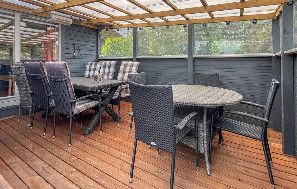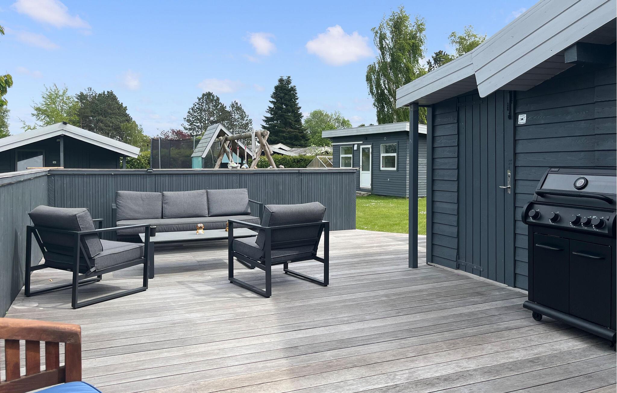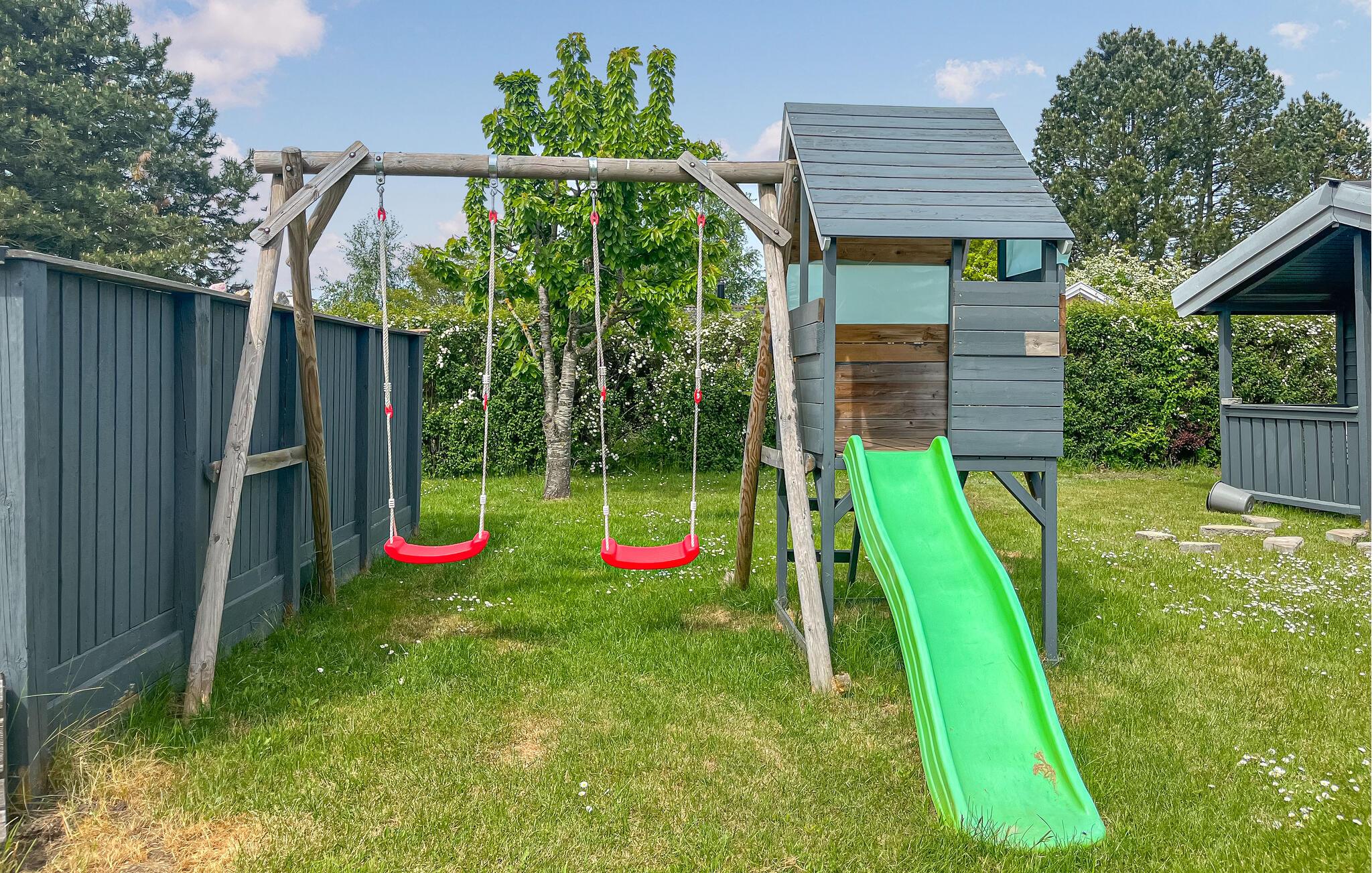 Brug den store træterrasse til solrige eftermiddage og hyggelige grillaftener. Læn jer tilbage i loungemøblerne eller spis sammen i den overdækkede spiseplads. Den store have tilbyder masser af plads til at lege, boltre sig og slappe af. Børnene vil nyde legehuset med gynger og rutsjebane samt den store trampolin.