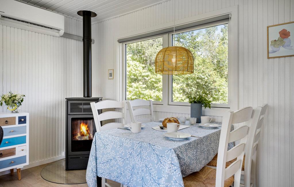 Jeres charmerende feriehus med sin rummelige grund giver jer de perfekte betingelser for en aktiv, men afslappende ferie med familien. Sæt jer til rette i den åbne stue og spisestue, der skaber en indbydende atmosfære med store vinduer og lyse farver. Slap af i sofaen med udsigt over det grønne eller afrund dagen med et fælles måltid ved spisebordet. Det åbne køkken er praktisk indrettet og lægger op til at lave mad sammen.