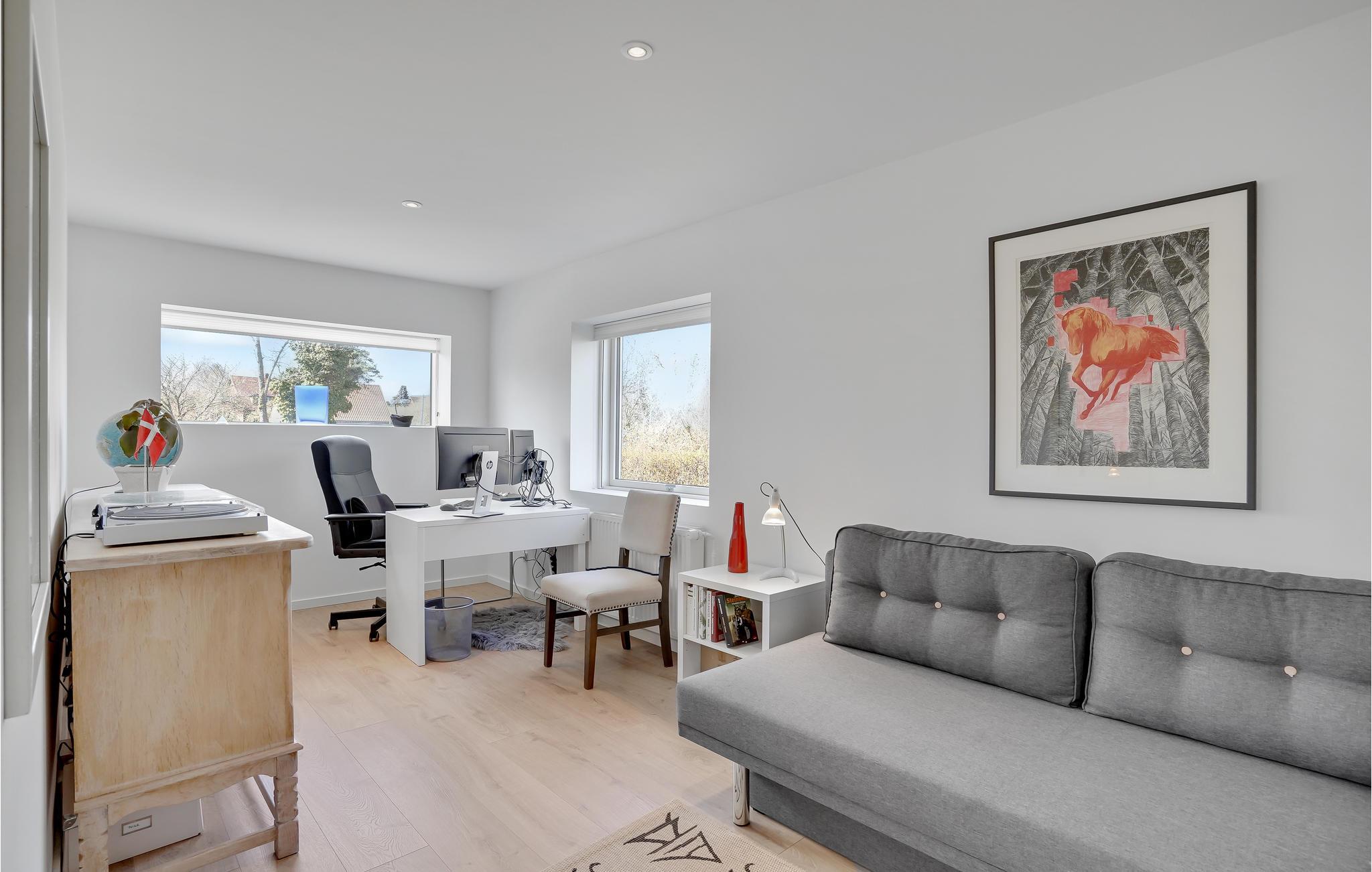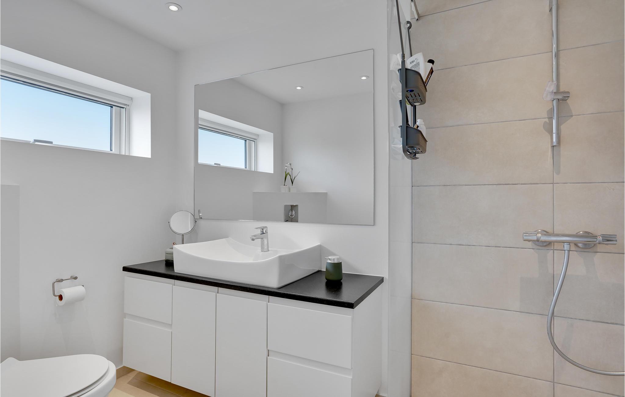 Dette indbydende sommerhus gør alle drømme om en ferie nær stranden til virkelighed. Fra huset kan I nemlig nyde en formidabel udsigt til havet via de store vinduespartier, som går gulv til loft. Huset er lækkert udstyret med moderne faciliteter og har desuden et aktivitetsrum.