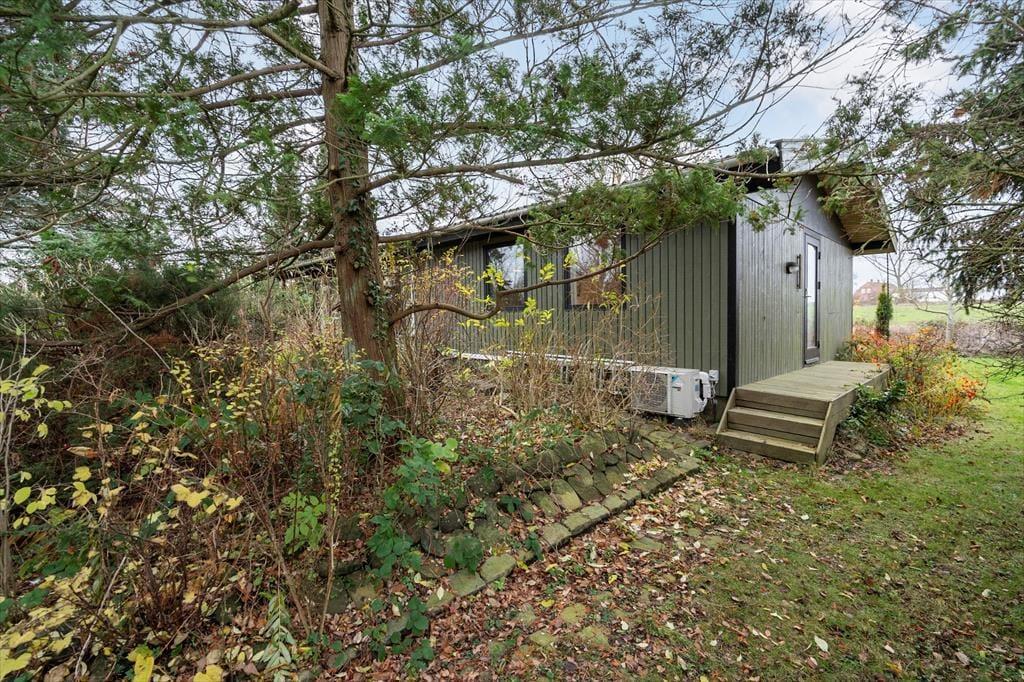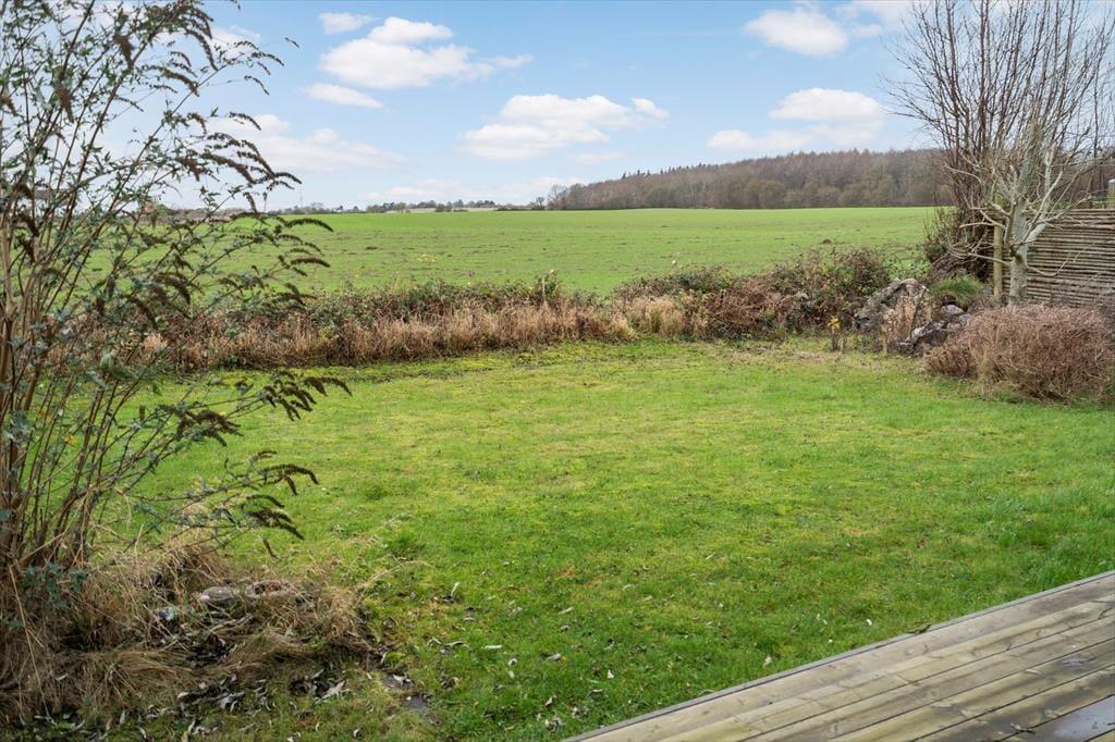 Sommerhuset er omkranset af en dejlig stor have med træer og med hyggelige terrasser. Her kan I nyde de lune dage og aftener. I haven kan I være ugenert og nyde udsigten til åbne marker på den ene side af huset. Her finder I både plads til hygge, afslapning og natureventyr, og hvis I er heldige, vil I opleve rådyr komme forbi i haven. Fra huset har I kun 250 meter til stranden med badebro.