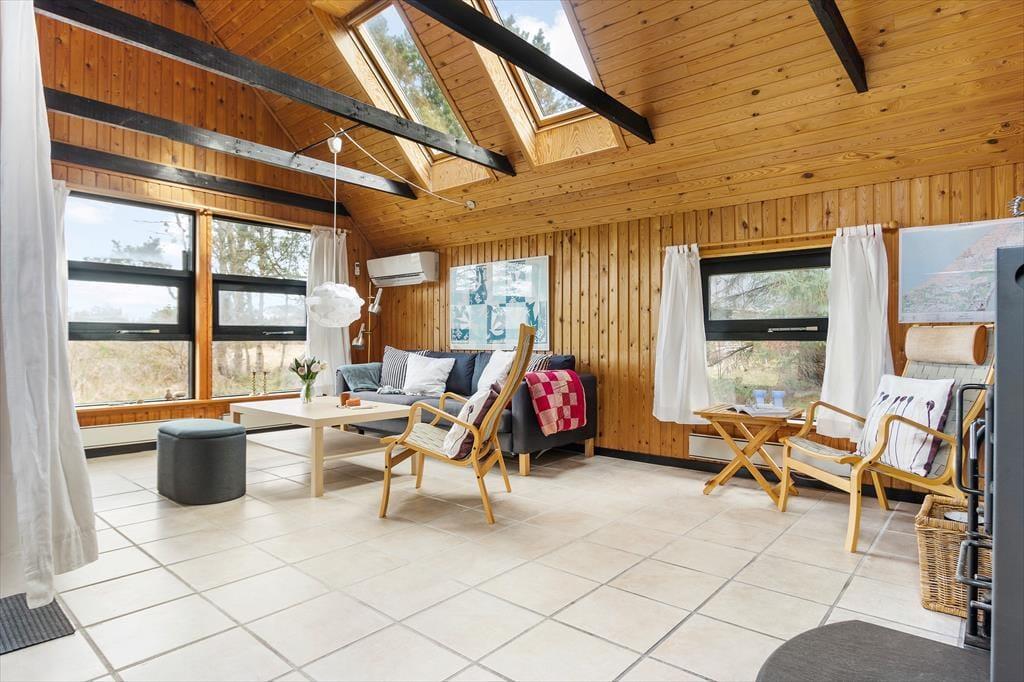 Når sommervejret er lunt og lækkert, er det sikkert fristende at åbne stuens glasdør og rykke ud på terrassen på den grønne naturgrund. Der er en delvist overdækket terrasse på vestsiden af huset, mens den sydvendte er helt åben, så du kan lige tage bestik af sol- og vindforhold, inden du vælger din siddeplads. Hvis du vil skrue helt op for feriestemningen, kan du bære kølige forfriskninger ud i det fri og begynde at tænde op i havegrillen, så den er helt klar, når det er tid til at tilberede aftensmaden.