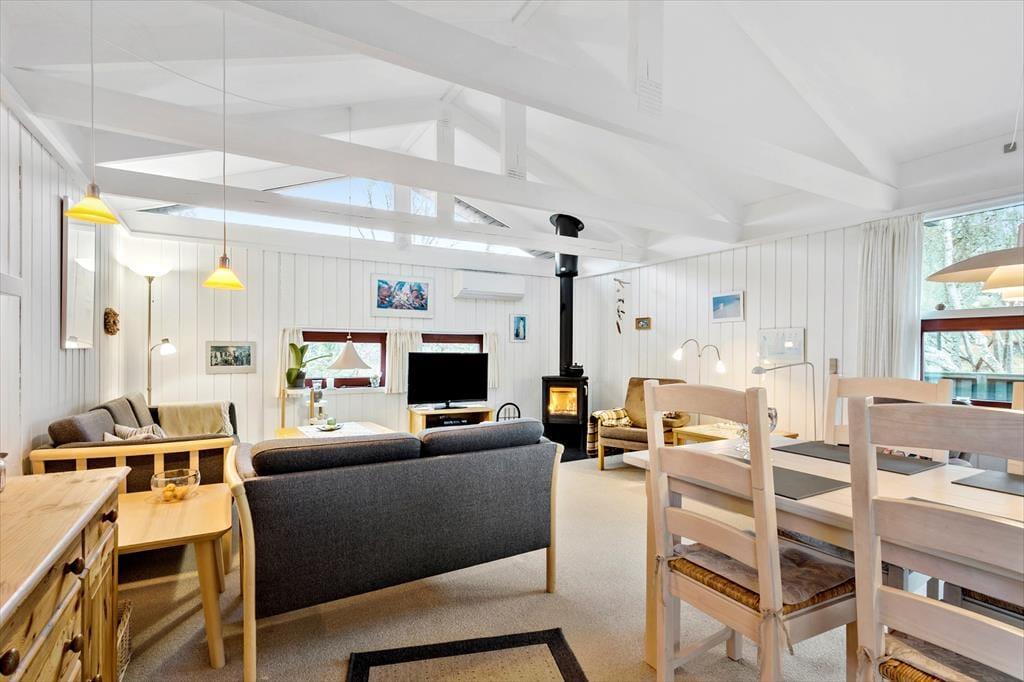 Sommerhus i Kandestederne, Nordjylland, med plads til 6 voksne. Der er en hyggelig indretning med bl.a. brændeovn, og du finder desuden vaskemaskine, opvaskemaskine og tørretumbler i boligen.