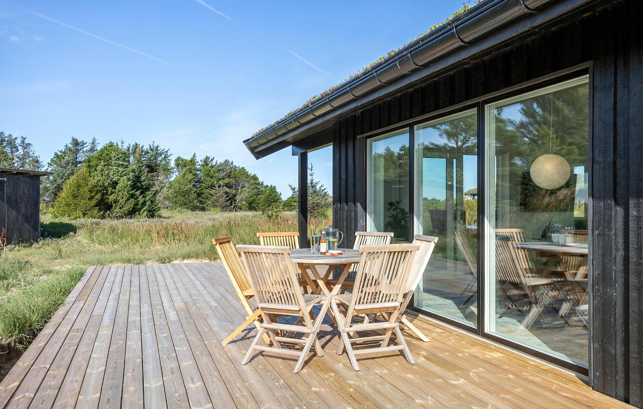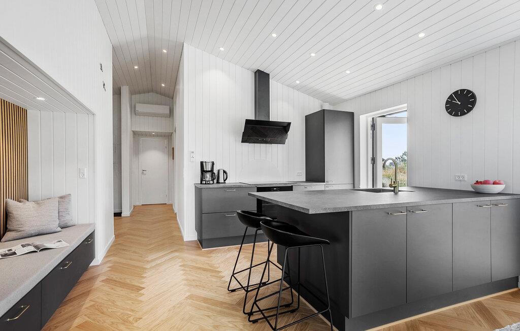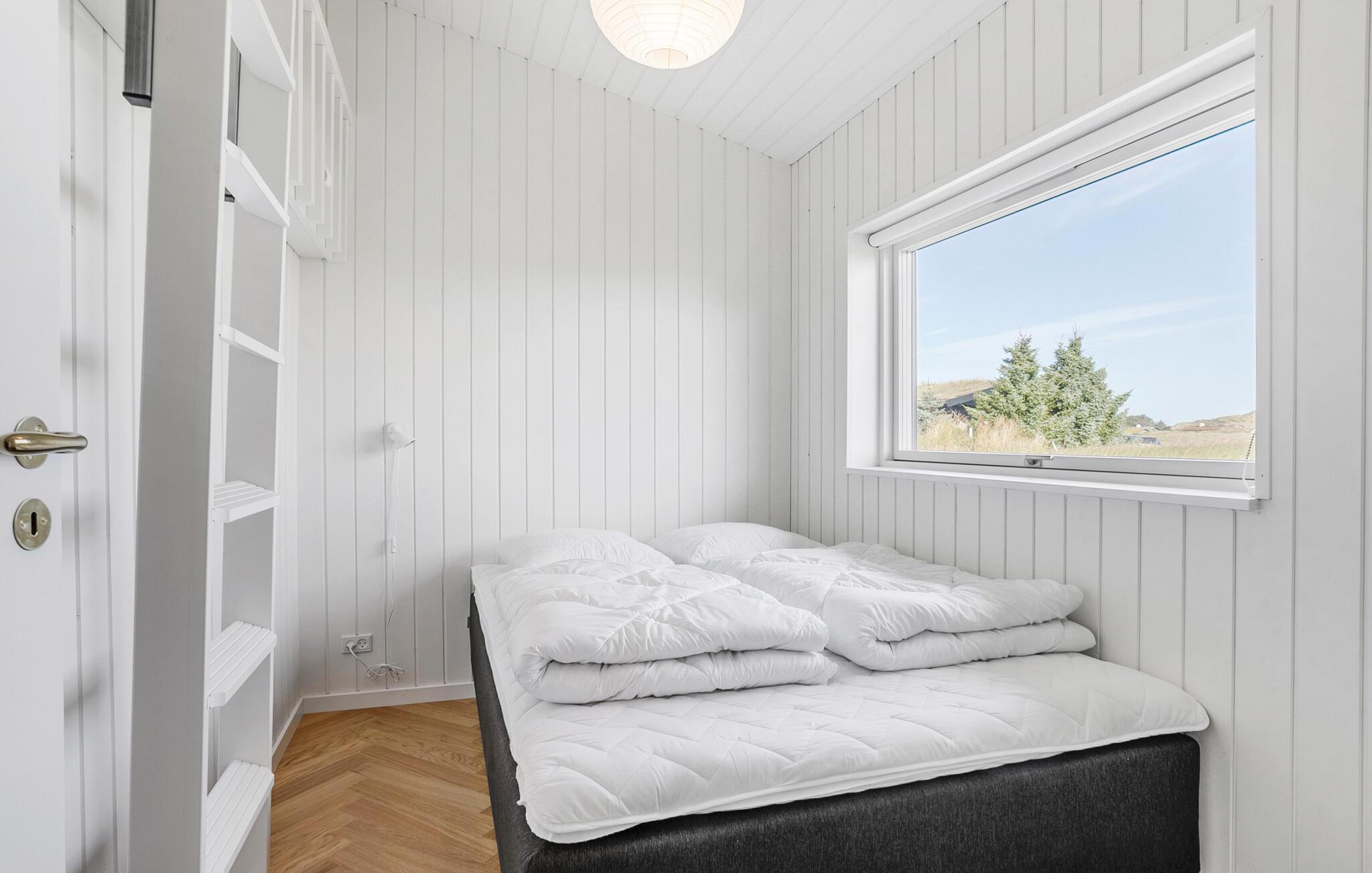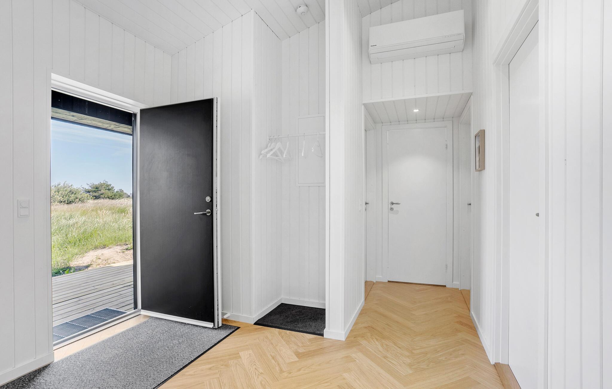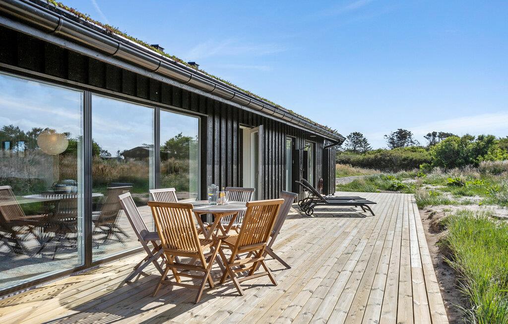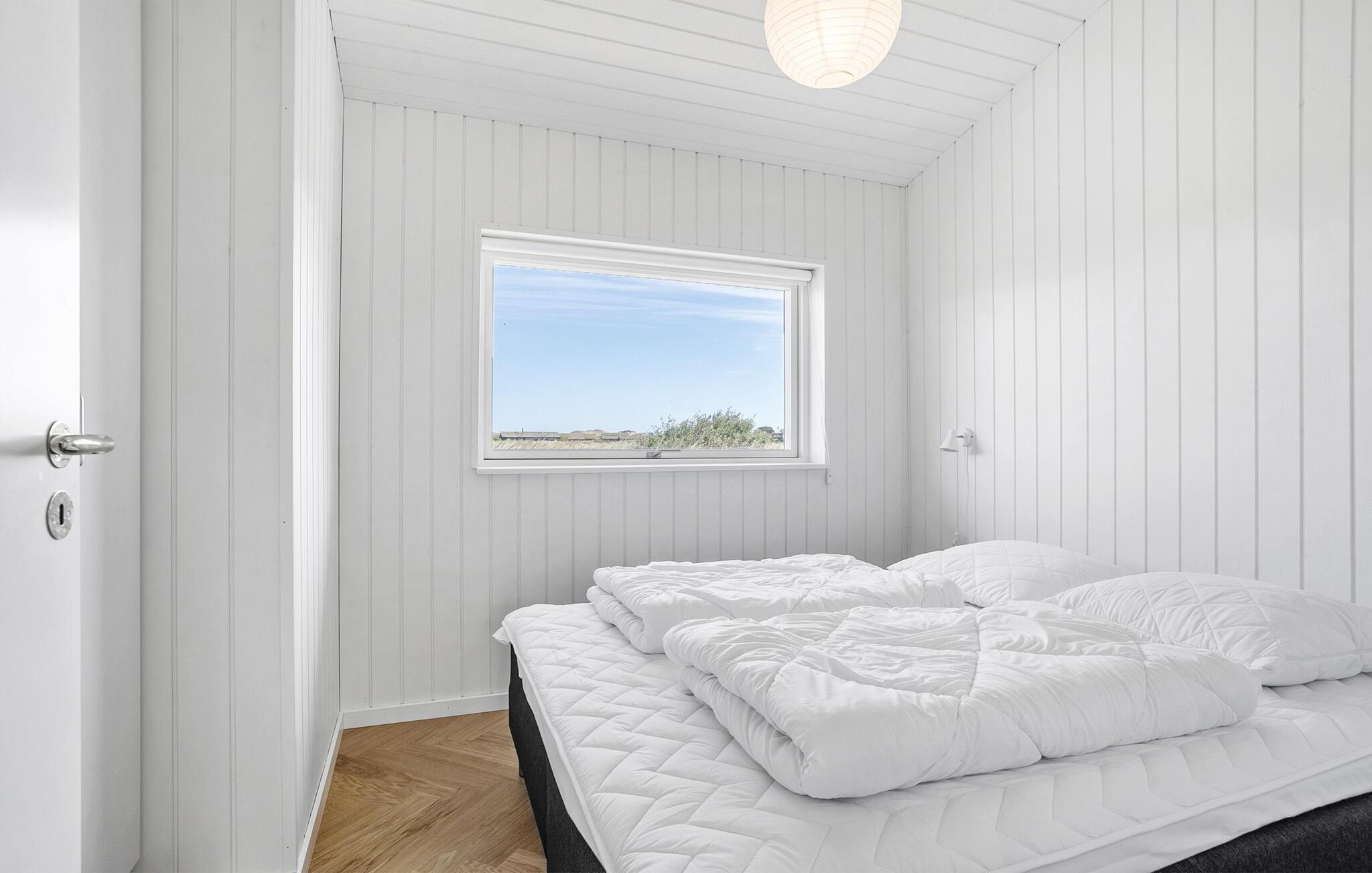 Dette moderne og komfortable feriehus har et lyst og stilfuldt interiør med masser af plads ferien med jeres venner eller familie. Store vinduer lukker masser af naturligt lys ind i de smagfulde rum og tilbyder idyllisk udsigt over det maleriske klitlandskab. Glæd jer til nogle hyggelige madlavningsaftener i det åbne køkken, planlæg dagens aktiviteter ved spisebordet og lyt til vindens susen, mens I læner jer tilbage på sofaen om aftenen, mens ilden fra brændeovnen bader rummet i varmt lys.