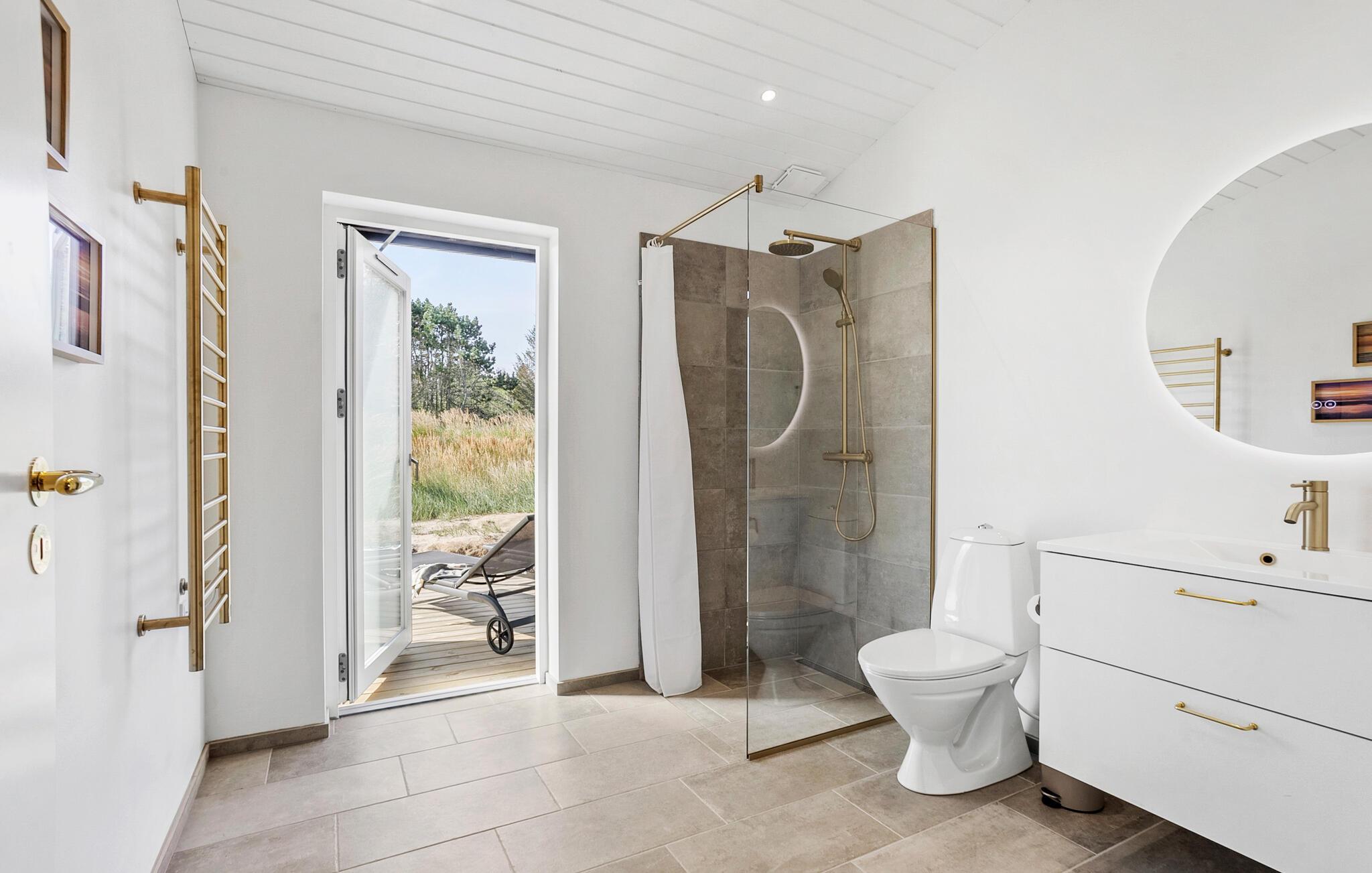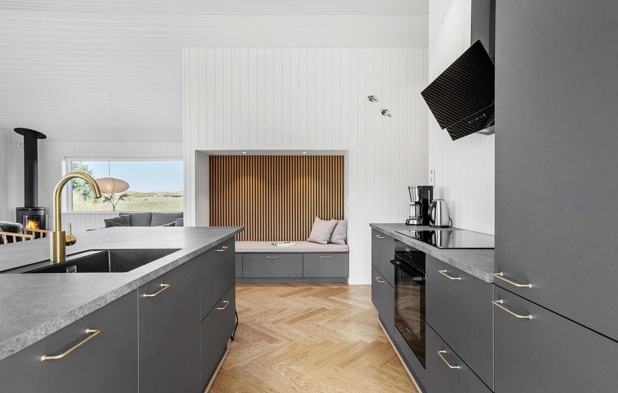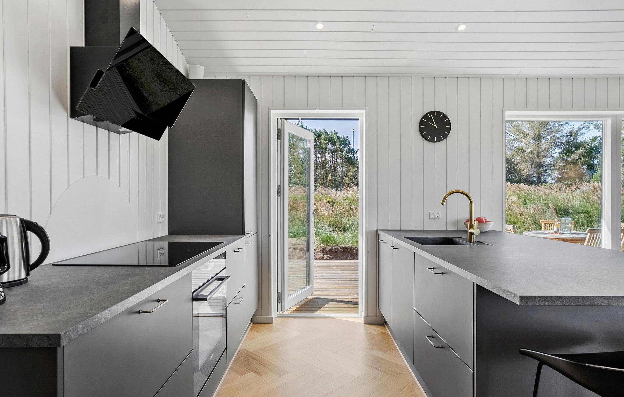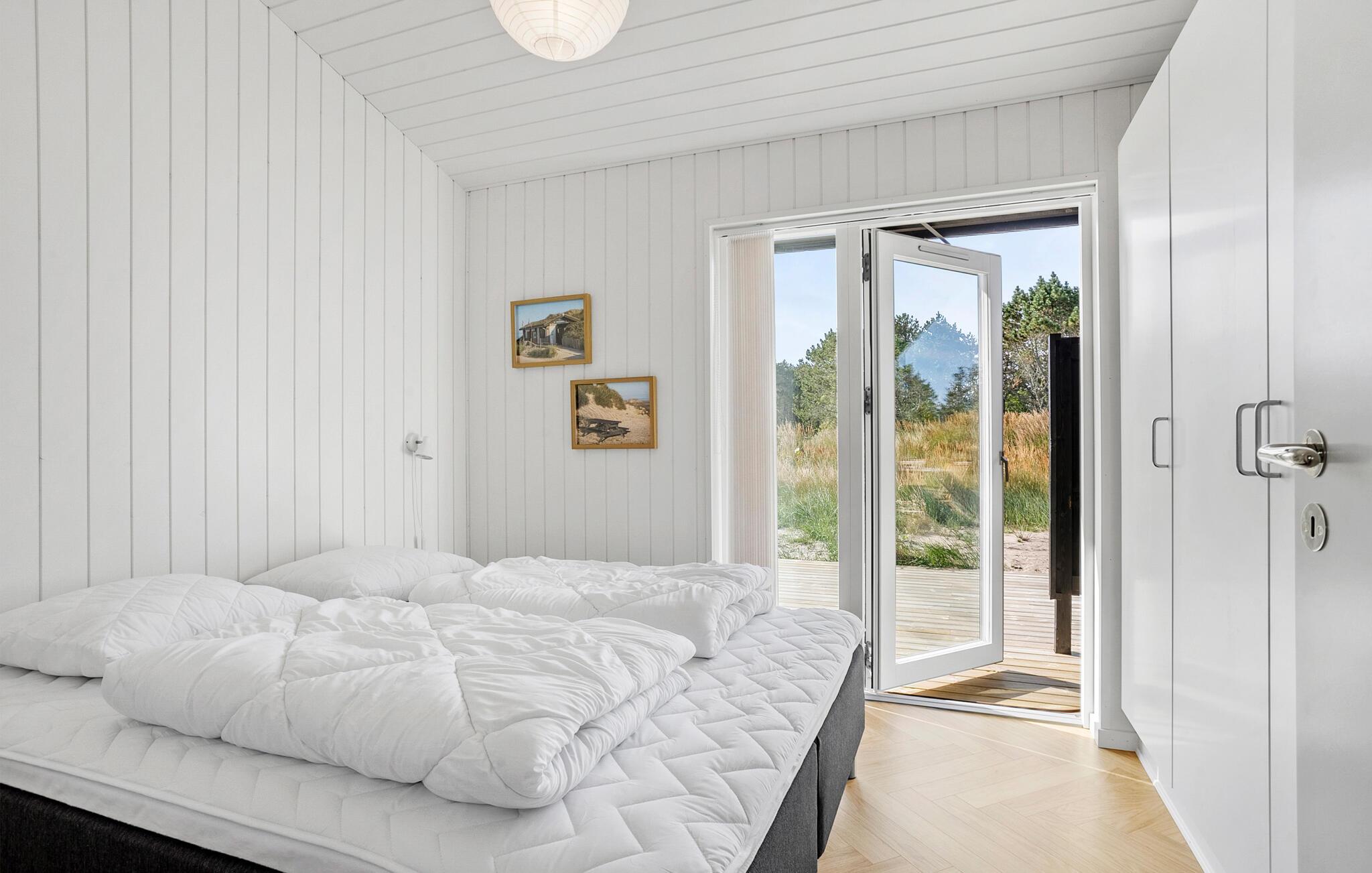 Dette moderne og komfortable feriehus har et lyst og stilfuldt interiør med masser af plads ferien med jeres venner eller familie. Store vinduer lukker masser af naturligt lys ind i de smagfulde rum og tilbyder idyllisk udsigt over det maleriske klitlandskab. Glæd jer til nogle hyggelige madlavningsaftener i det åbne køkken, planlæg dagens aktiviteter ved spisebordet og lyt til vindens susen, mens I læner jer tilbage på sofaen om aftenen, mens ilden fra brændeovnen bader rummet i varmt lys.