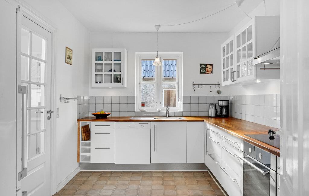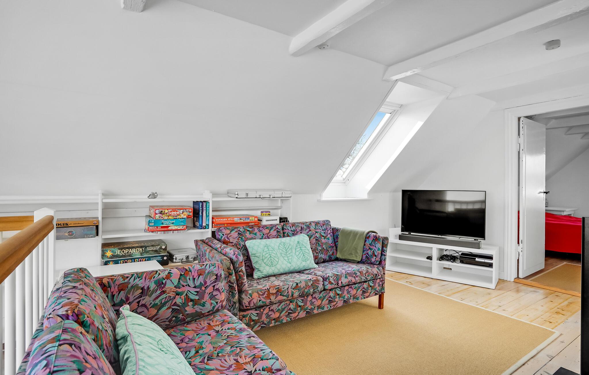 Kobl af fra hverdagen, lad jer forkæle af havet, og nyd uforglemmelige dage i bedste beliggenhed kun få skridt fra vandet. Her venter bølgeskvulp, åbne marker og en komfortabel indkvartering. Slap af i den indbydende indretning, der fordeler sig over to etager og giver god plads til både hygge og afslapning. Slap af i den øverste stue foran panoramavinduerne. Læs en bog på sofaen, eller lad blikket glide ud over havet. Det lange spisebord indbyder til fælles måltider, mens brændeovnen sørger for dejlig varme og en behagelig stemning. I det flotte køkken kan I nemt tilberede jeres feriemåltider.