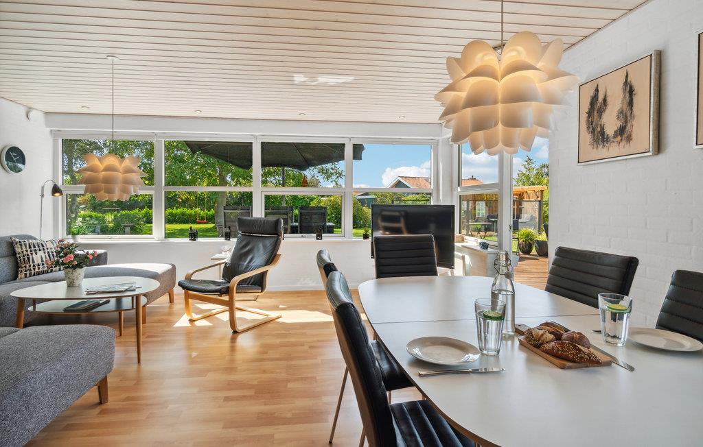 Velkommen til dette tiltalende hus med en stor, anlagt have og mange hyggekroge. Her er I tæt på både fjord og hav, og det smagfuldt indrettede hus med en lys atmosfære giver jer de ideelle rammer for en fredfyldt ferie med nærvær. Hyg jer med fælles madlavning og kæmp imod hinanden i brætspilsdyster. På varme dage kan I nyde alle jeres måltider udenfor. Her kan I vælge mellem flere terrasser, og den store have inviterer til mange sjove timer i det fri. Mærk solens varme stråler på liggestolen og glæd børnene med et bål om aftenen. Stranden når I nemt til fods.
