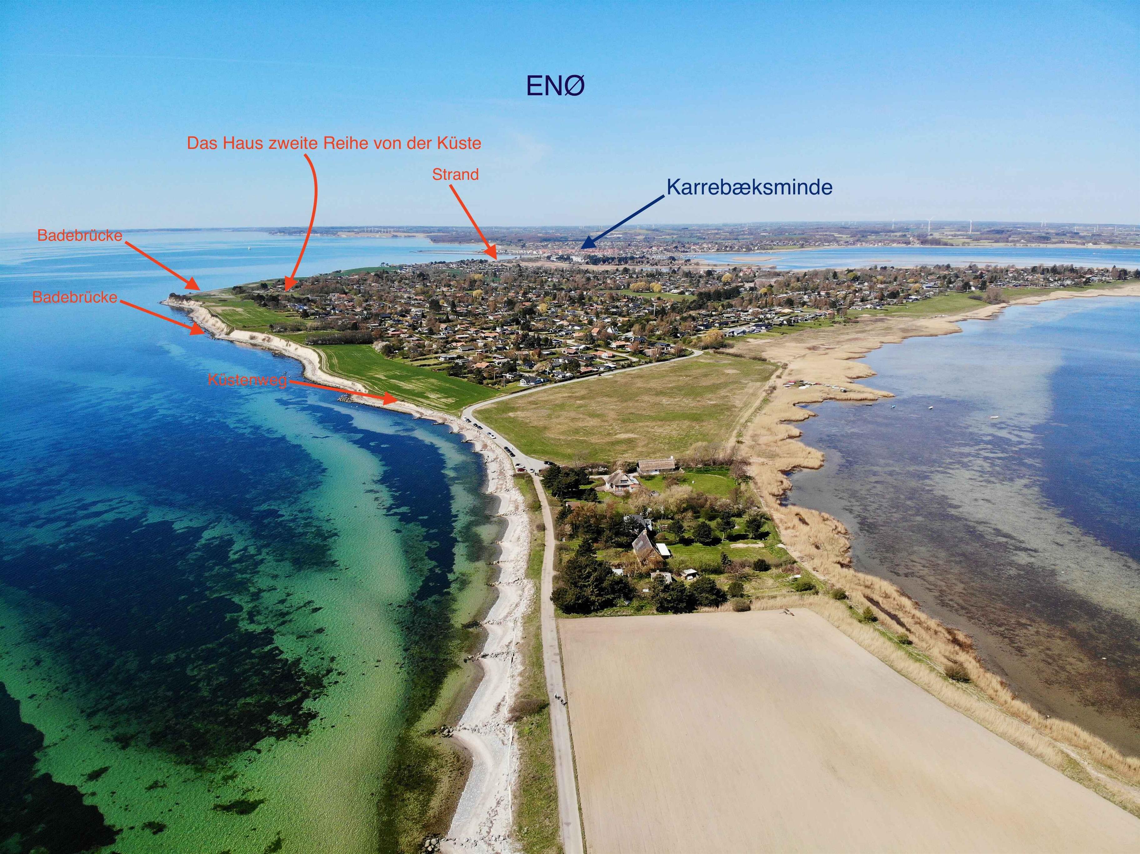 Velkommen til et lyst og sommerhus på Enø med dejlige terrasser og kun 350 meter til badebroerne.