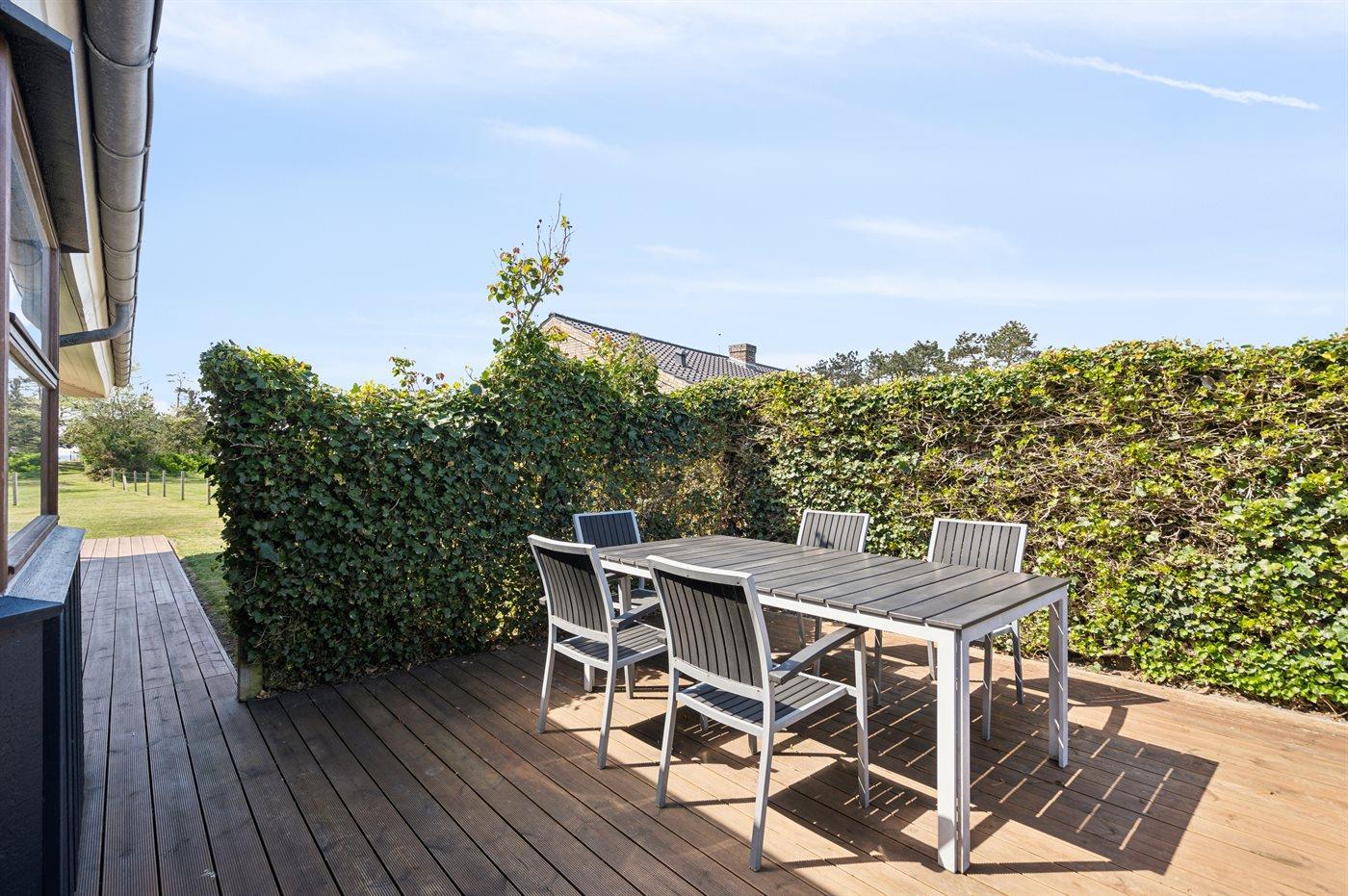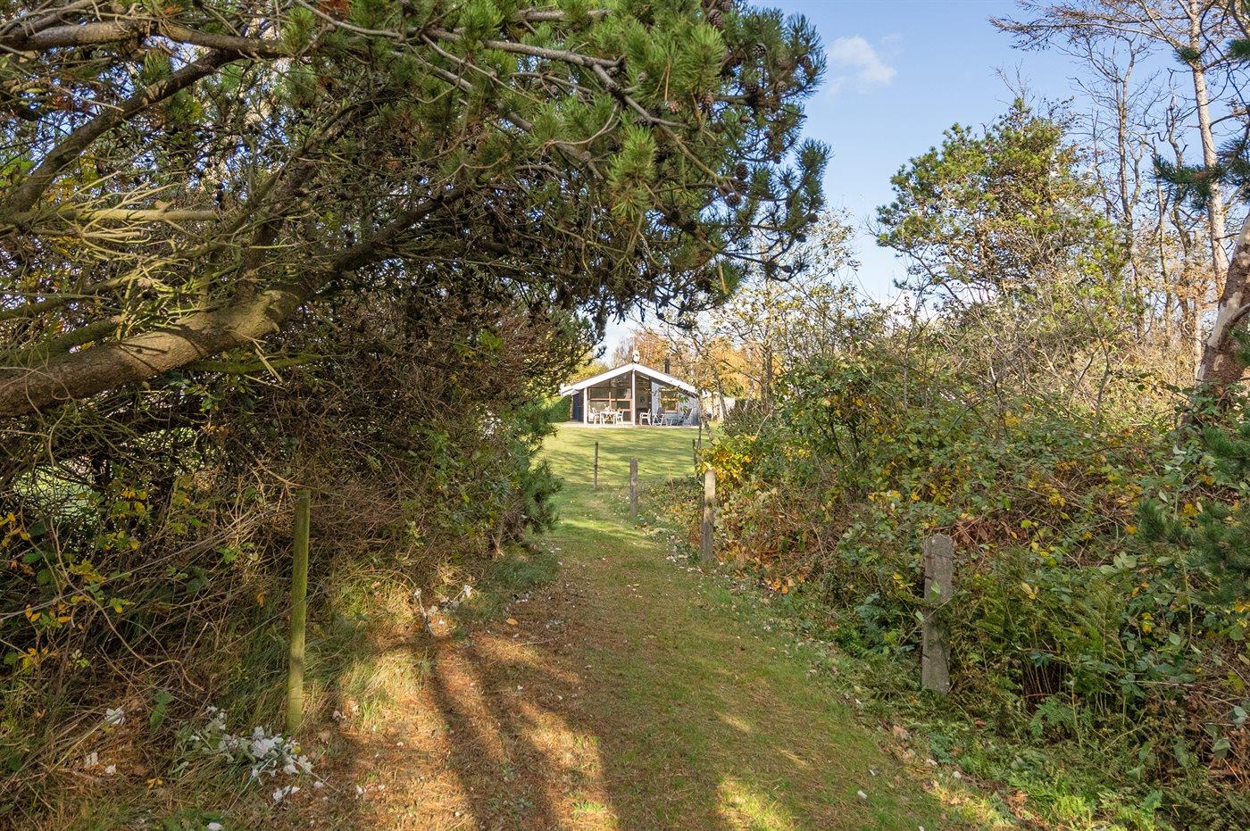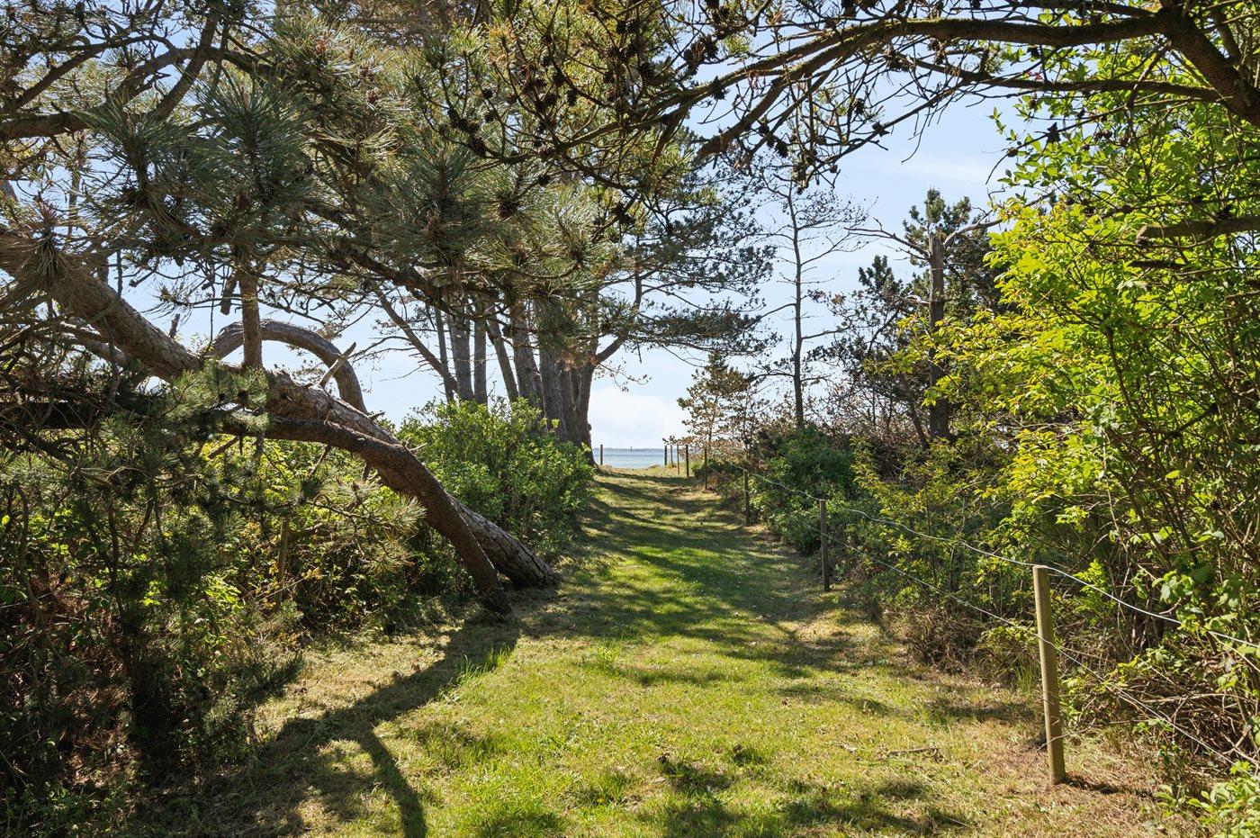 Ferieboligen er beliggende på en 900 m² stor naturgrund. Der er 75 m til havet. Nærmeste forretning er beliggende i en afstand af 300 m. Til ferieboligen hører 20 m² terrasseareal. Desuden er der 15 m² overdækket terrasse. Gynge. Grill til rådighed. Parkering ved ferieboligen.