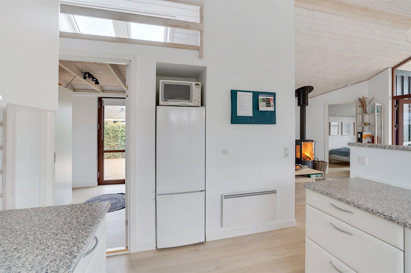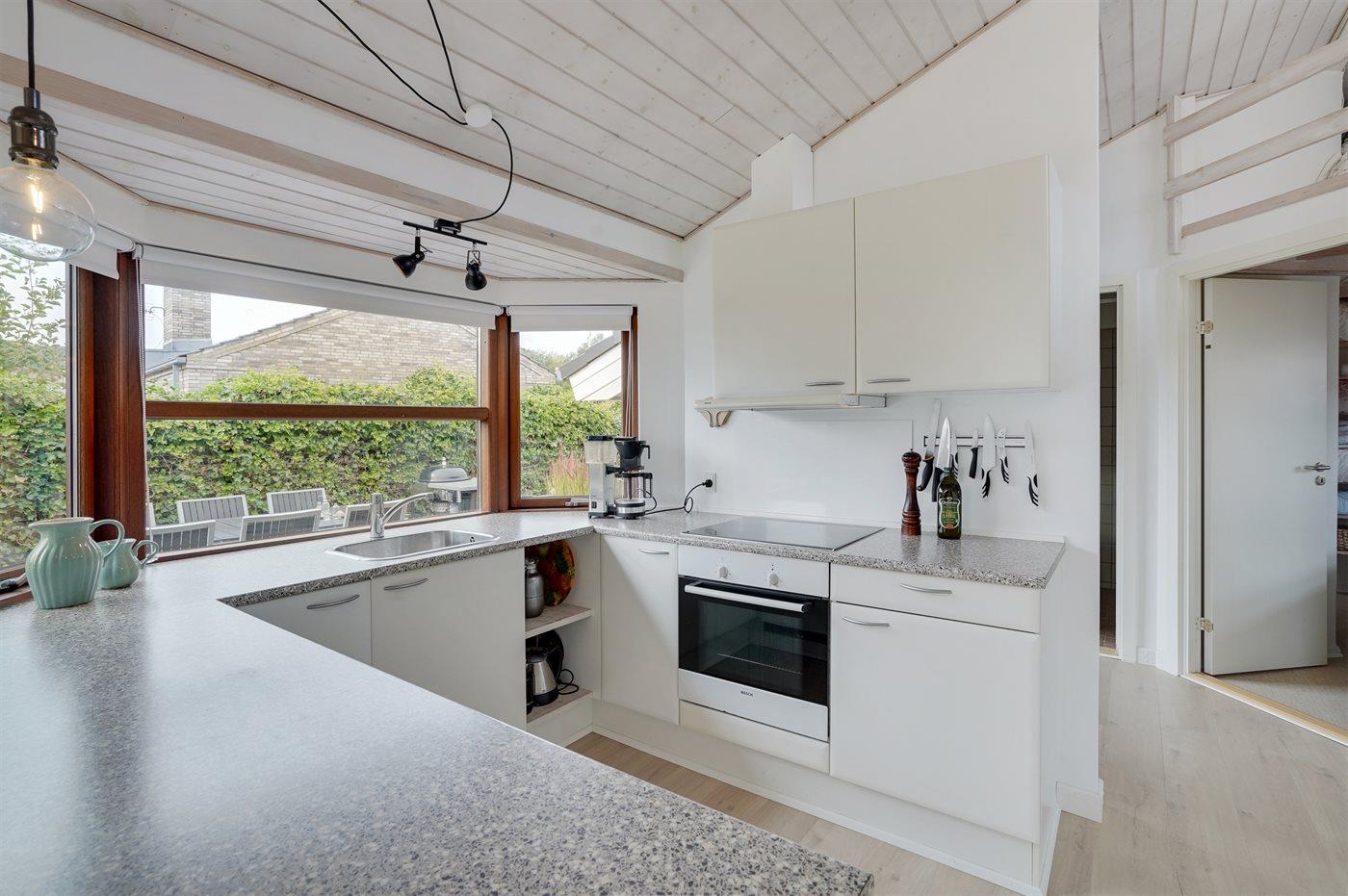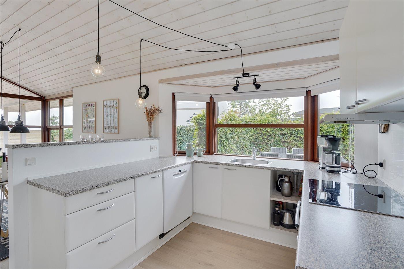 Køkkenet er udstyret med 1 køleskab. Der er 4 keramiske kogeplader, varmluftovn, mikrobølgeovn samt opvaskemaskine.