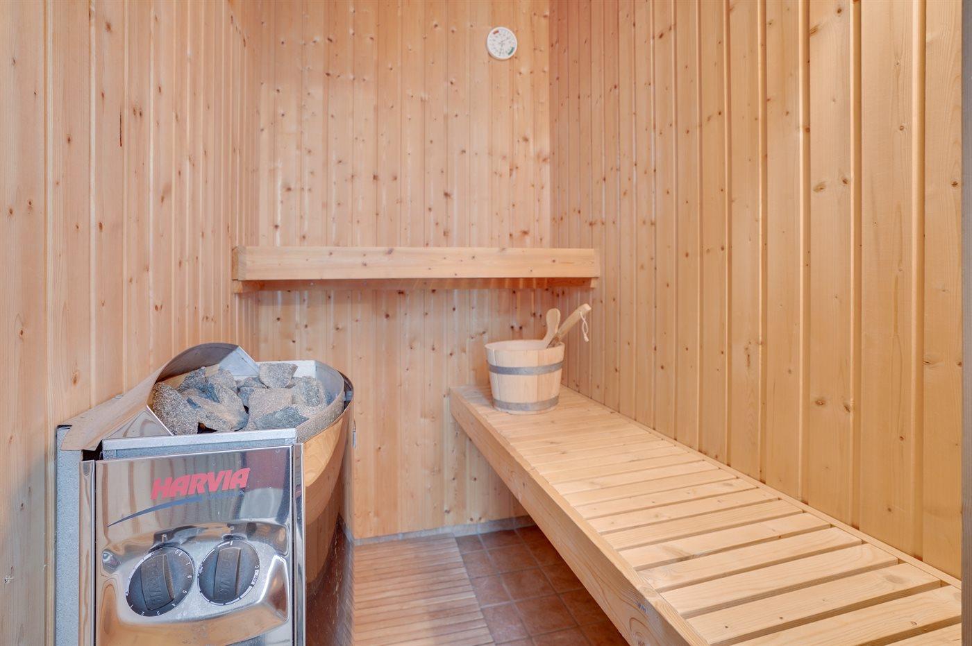 Der er 2 badeværelser med bruseniche og 2 toiletter. Der er gulvvarme på 2 badeværelser. I saunaen er der mulighed for afslapning.