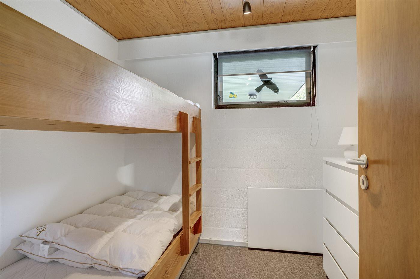 Der er i alt 3 soveværelser. Sovepladserne fordeler sig på: 2 sovepladser i dobbeltseng. 4 sovepladser i køjesenge. Derudover er der 1 stk. barneseng.