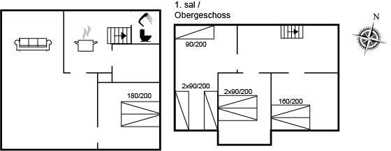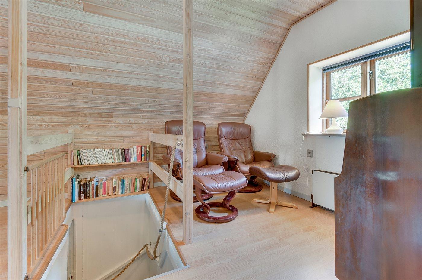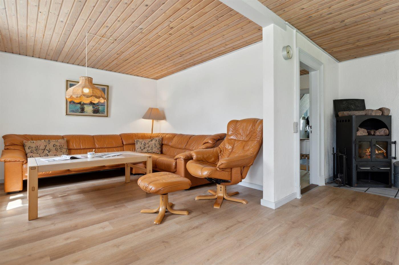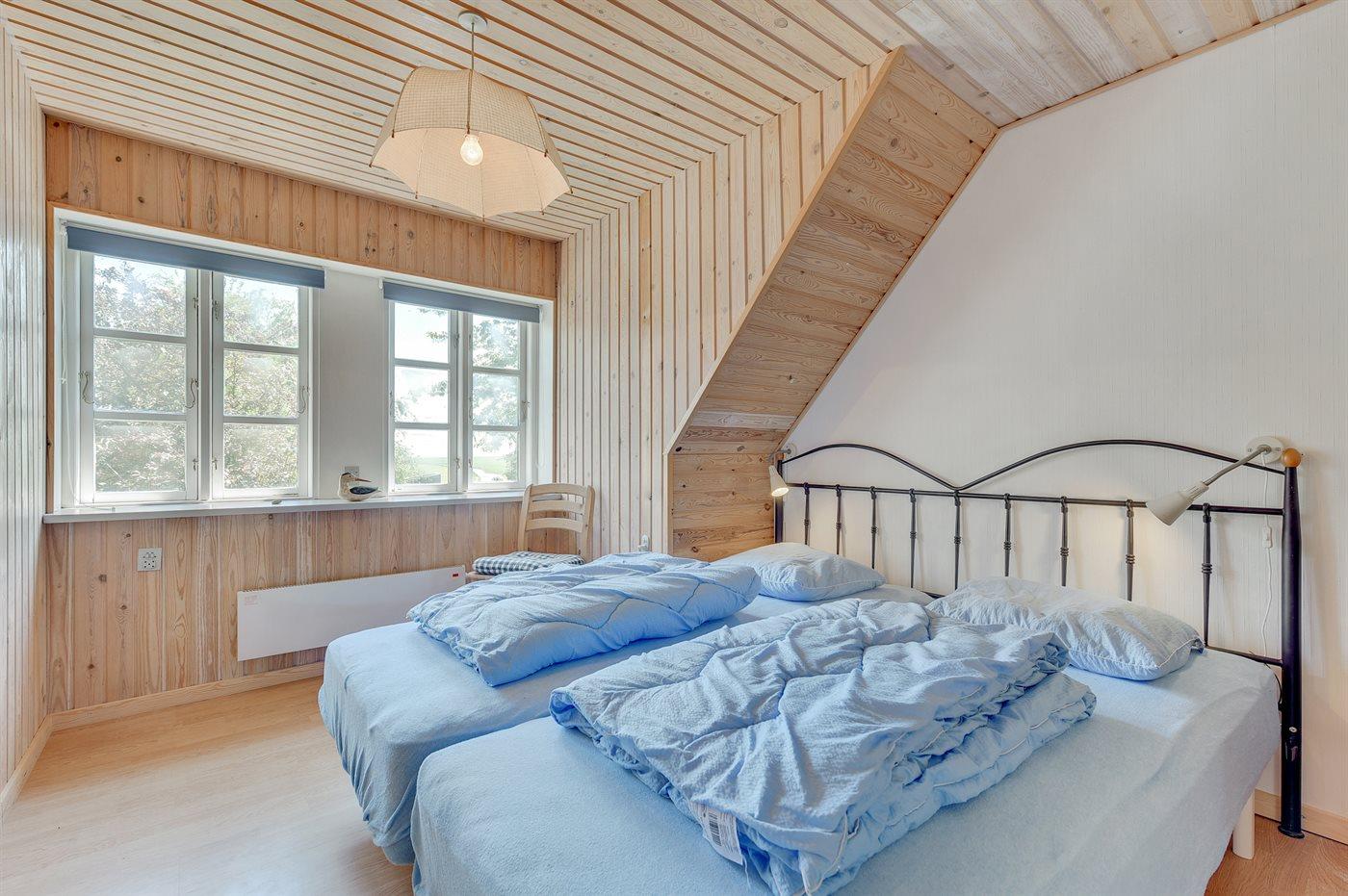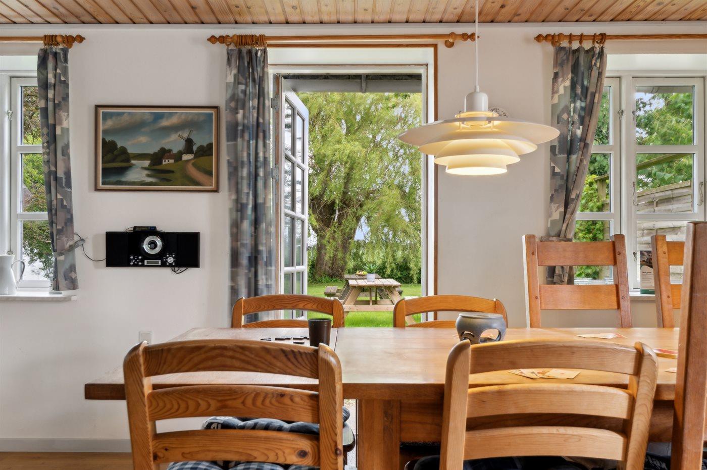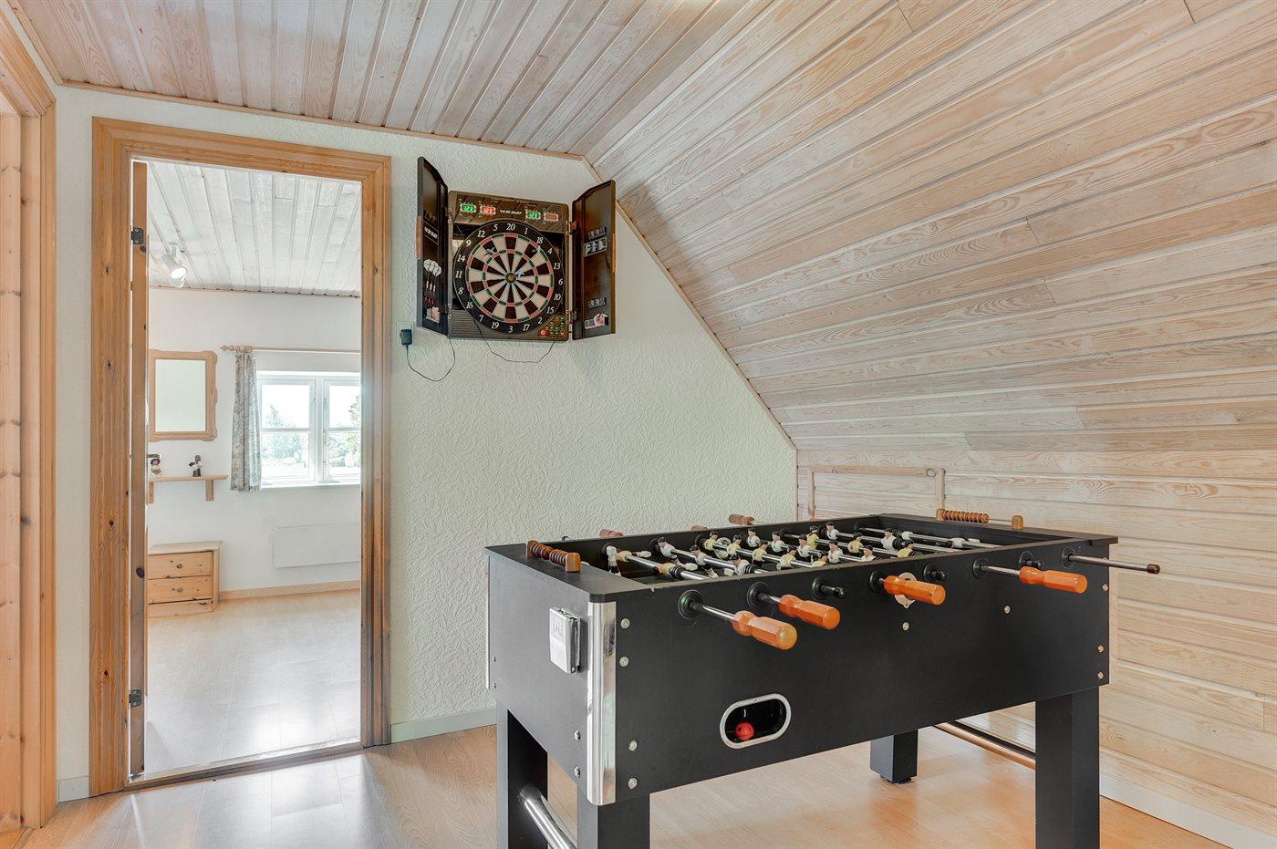 Rummeligt sommerhus med kig til havet beliggende nær stranden i rolige og landlige omgivelser. På husets øverste etage er der et lege- og opholdsrum ved trappen, som er inrettet med bordfodbold, elektronisk dartskive samt en bogreol med danske og tyske bøger. Nabohuset er ikke beboet.