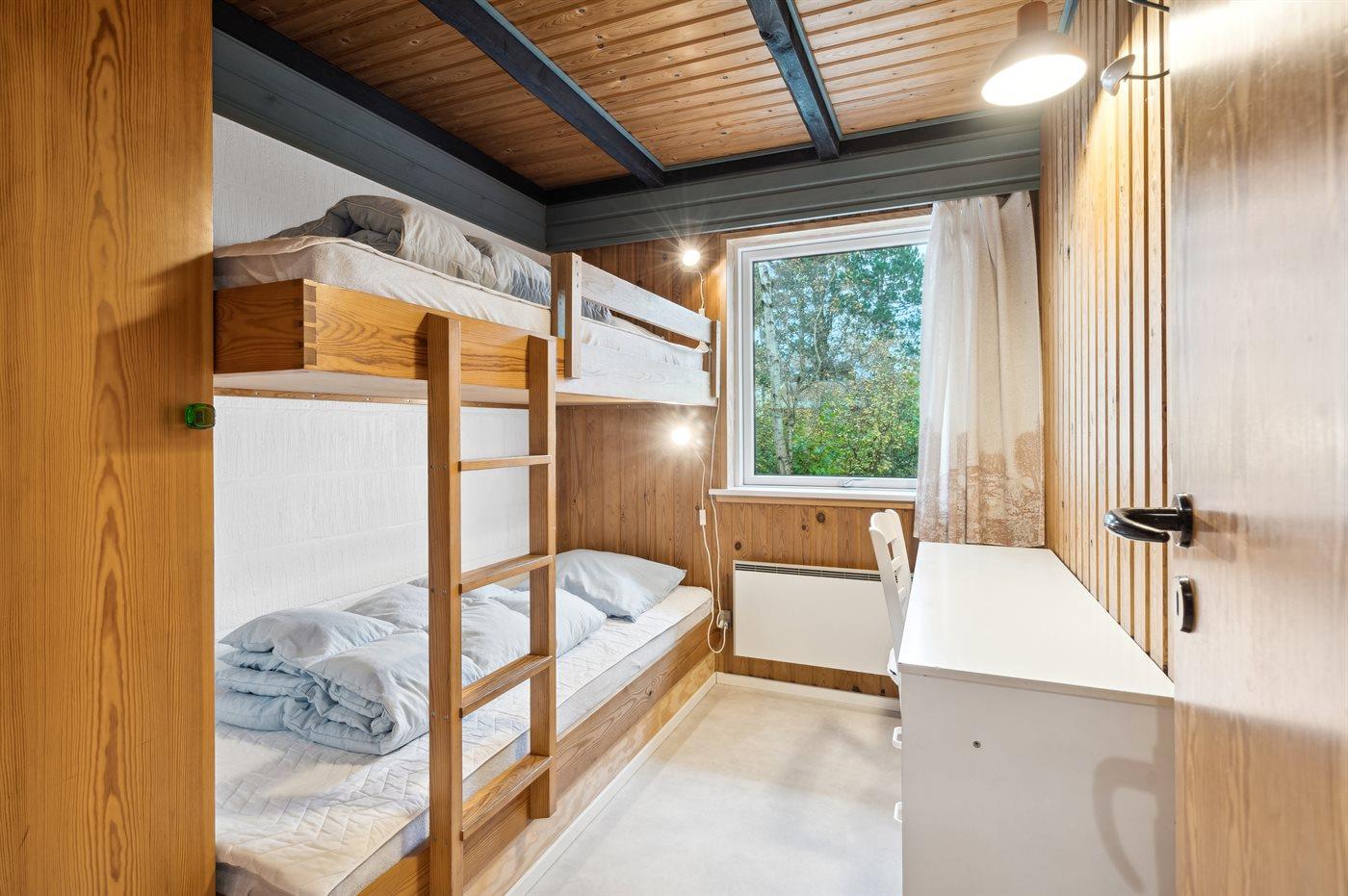 Der er i alt 3 soveværelser. Sovepladserne fordeler sig på: 2 sovepladser i dobbeltseng. 4 sovepladser i køjesenge. Derudover er der 1 stk. barneseng.